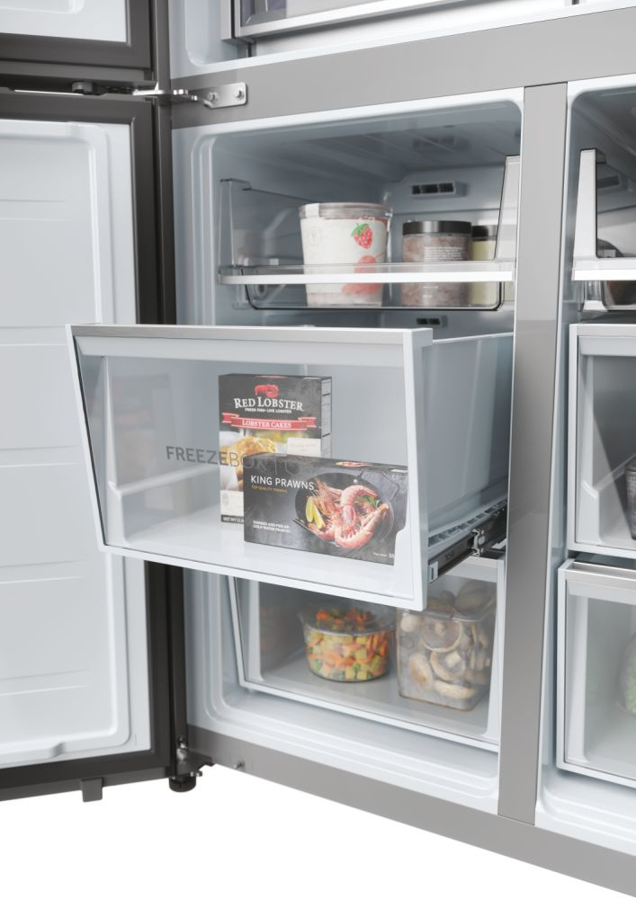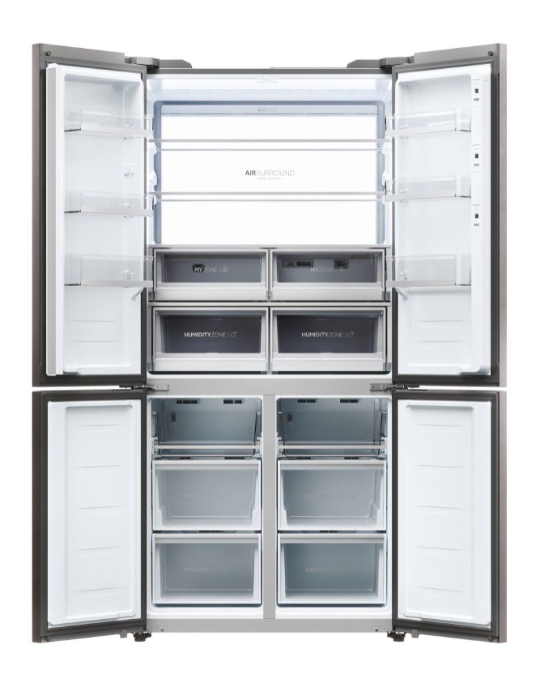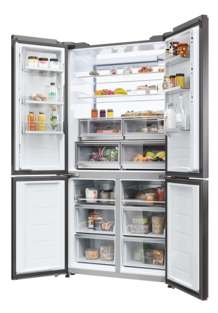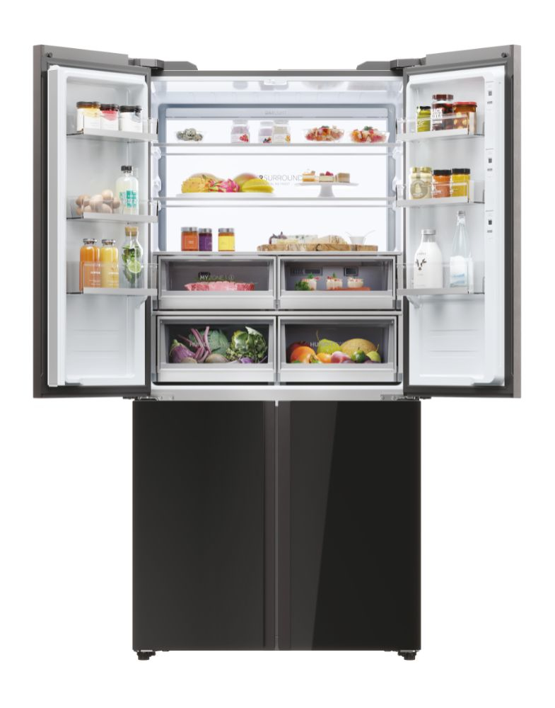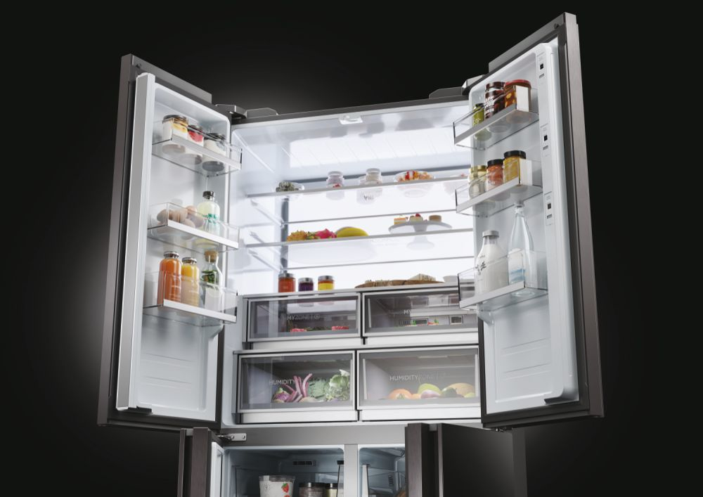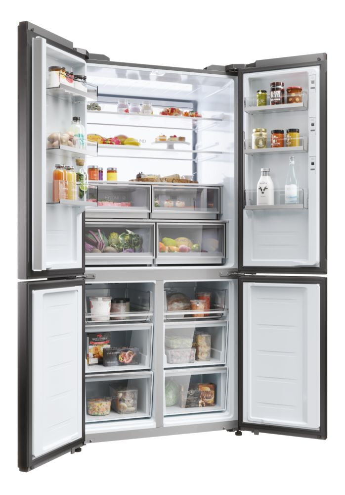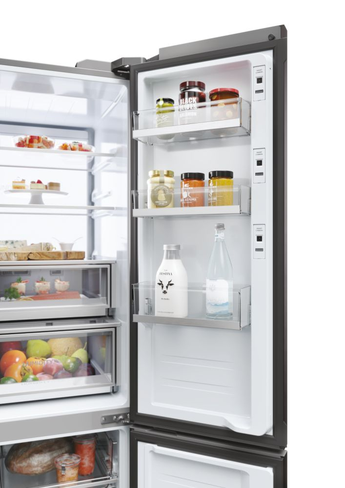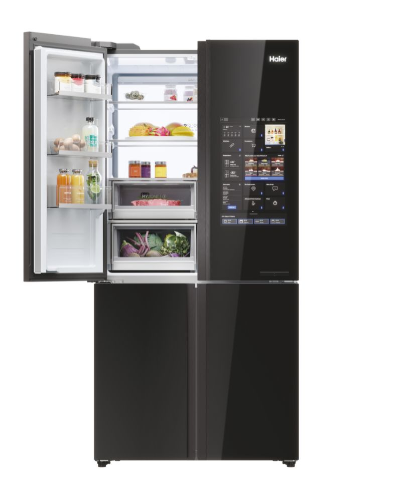 Il frigorifero a quattro porte Cube 90 Serie 9 con schermo integrato, largo 90 cm ed alto 190 cm, è equipaggiato con il meglio delle tecnologie di conservazione Fresher Techs di Haier. Lo straordinario schermo integrato permette di interagire con il frigorifero multidoor Cube 90 Series 9 avendo sempre una finestra sul mondo, grazie alla connessione web, e di godere di molte funzioni integrate grazie all’app hOn.