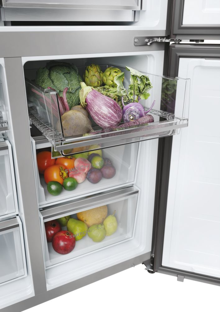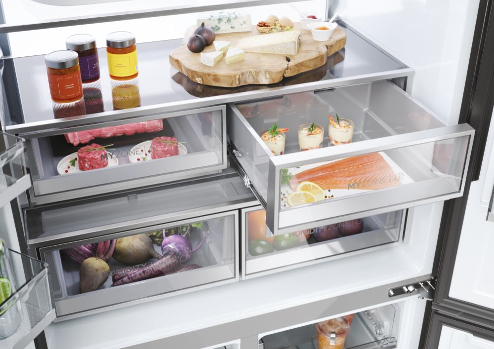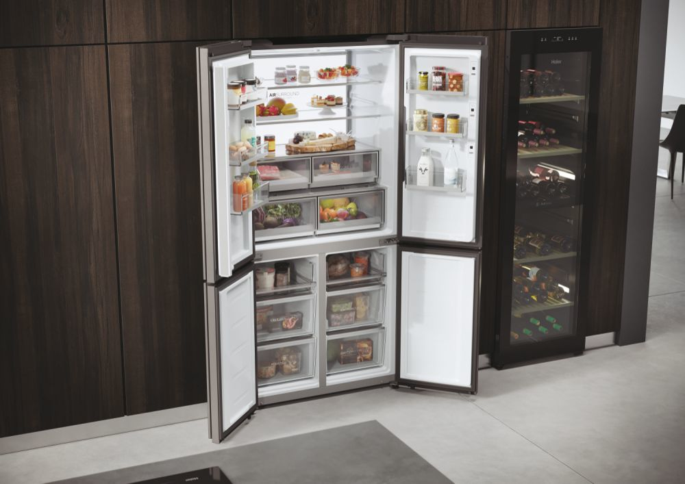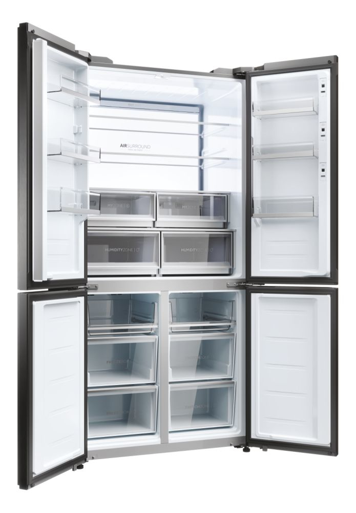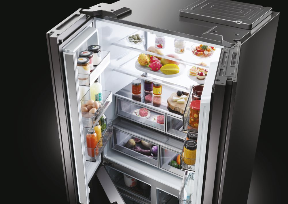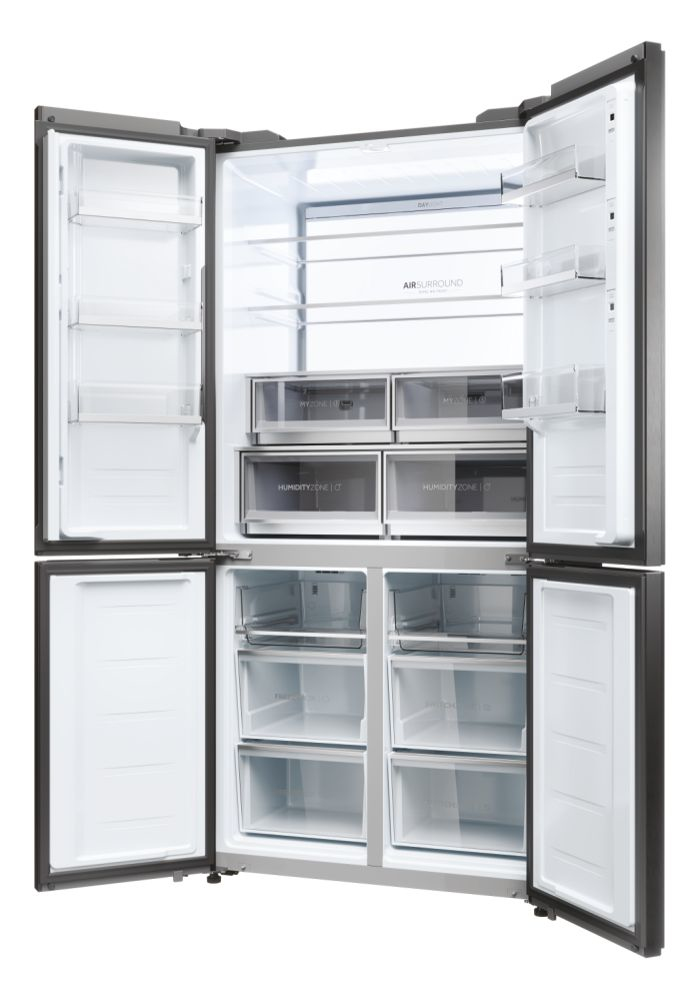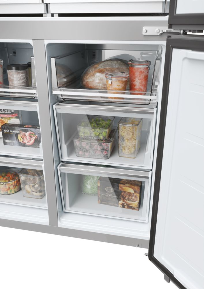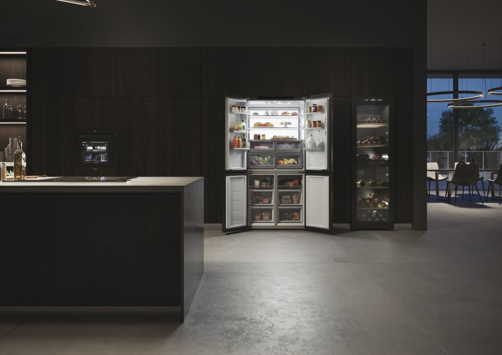 Il frigorifero a quattro porte Cube 90 Serie 9 con schermo integrato, largo 90 cm ed alto 190 cm, è equipaggiato con il meglio delle tecnologie di conservazione Fresher Techs di Haier. Lo straordinario schermo integrato permette di interagire con il frigorifero multidoor Cube 90 Series 9 avendo sempre una finestra sul mondo, grazie alla connessione web, e di godere di molte funzioni integrate grazie all’app hOn.