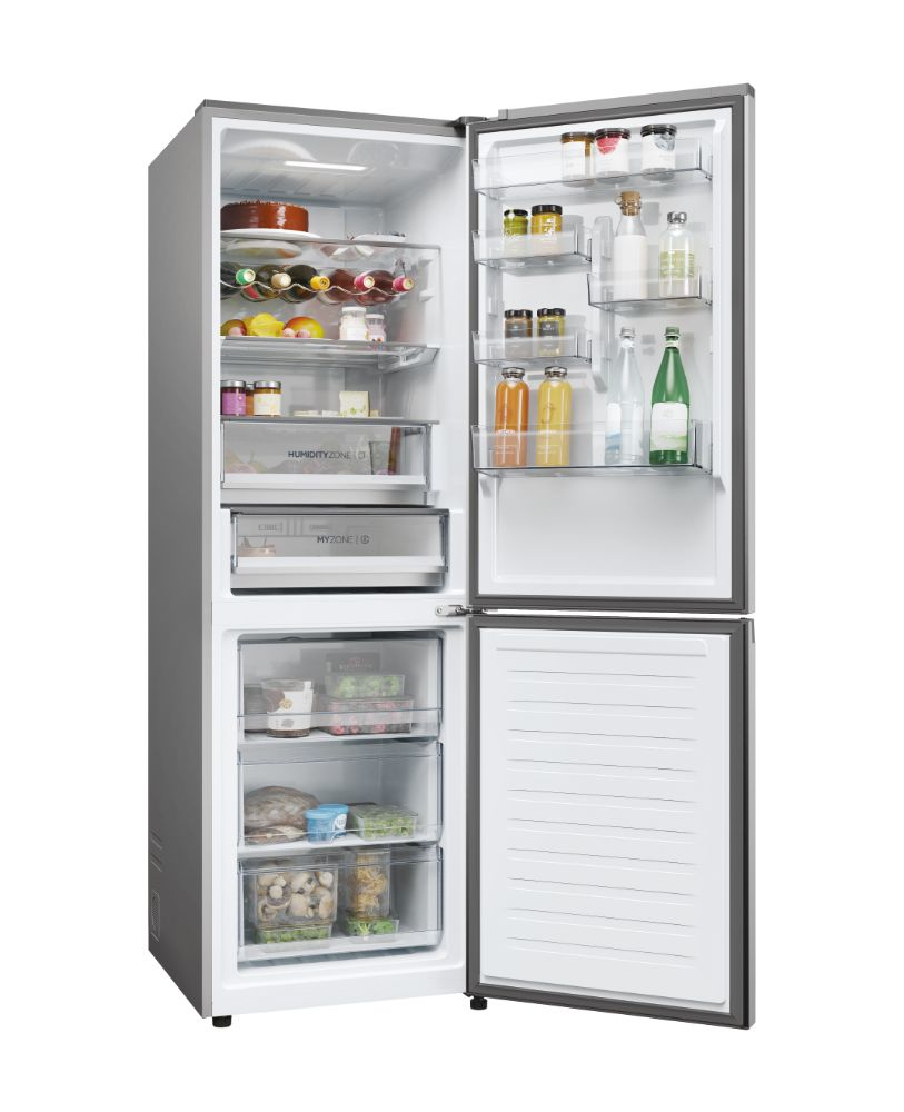 Haier 2D 60 Serie 5 Pro HDPW5618CNPD. Capacità netta totale: 352 L. Cerniera porta: Destra. Classe climatica: SN-T, Emissione acustica: 35 dB. Capacità netta frigorifero: 235 L, No Frost (frigorifero), Luce interna, Numero di ripiani frigorifero: 3. Capacità netta congelatore: 117 L, Capacità di congelamento: 10 kg/24h, No Frost (congelatore). Compartimento zona fresca. Classe efficienza energetica: C, Consumo energetico annuo: 171 kWh. Colore del prodotto: Acciaio inox