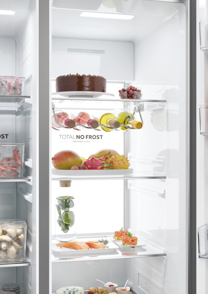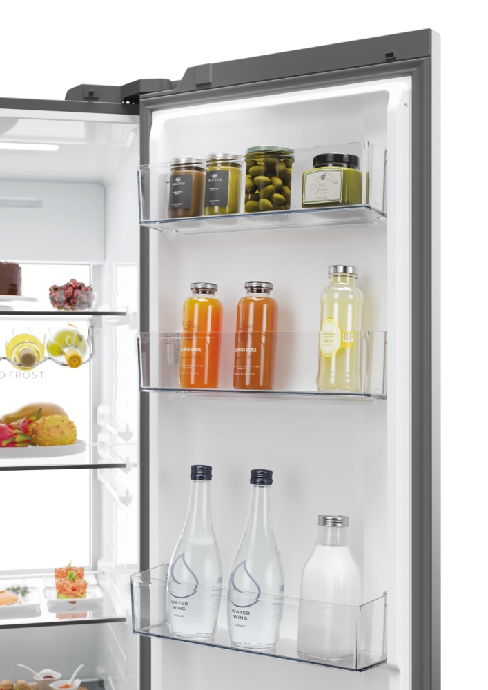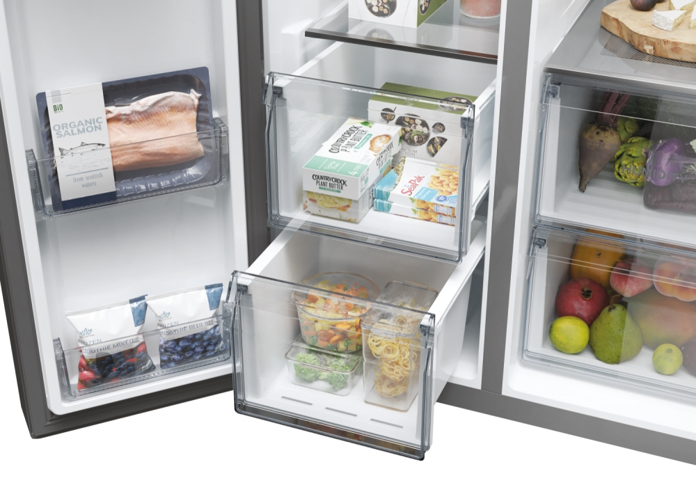 I frigoriferi Haier Side By Side 90 Serie 7 garantiscono la perfetta conservazione dei tuoi alimenti grazie a zone specializzate, tecnologia avanzata e altre soluzioni di raffreddamento e conservazione. Inoltre, grazie all’app hOn, all’intelligenza artificiale e alla connettività WiFi, offrono funzioni innovative che anticipano le tue esigenze di freschezza. Con una larghezza di 90 cm, offrono una grande capacità e un accesso agevole sia al frigorifero che al congelatore. L’ampio spazio di consente di conservare una grande quantità di cibo mantenendo gli alimenti ordinati e organizzati. Sono dotati di un design elegante che può adattarsi a qualsiasi stile di cucina e di un’interfaccia elettronica intelligente per impostare la temperatura perfetta in base alle tue necessità.