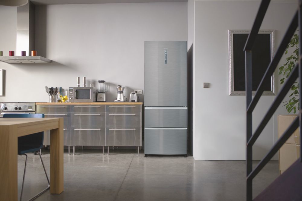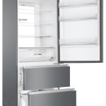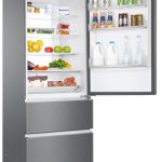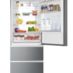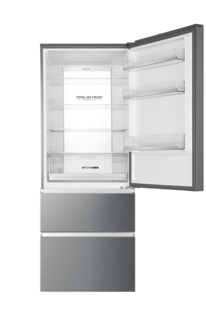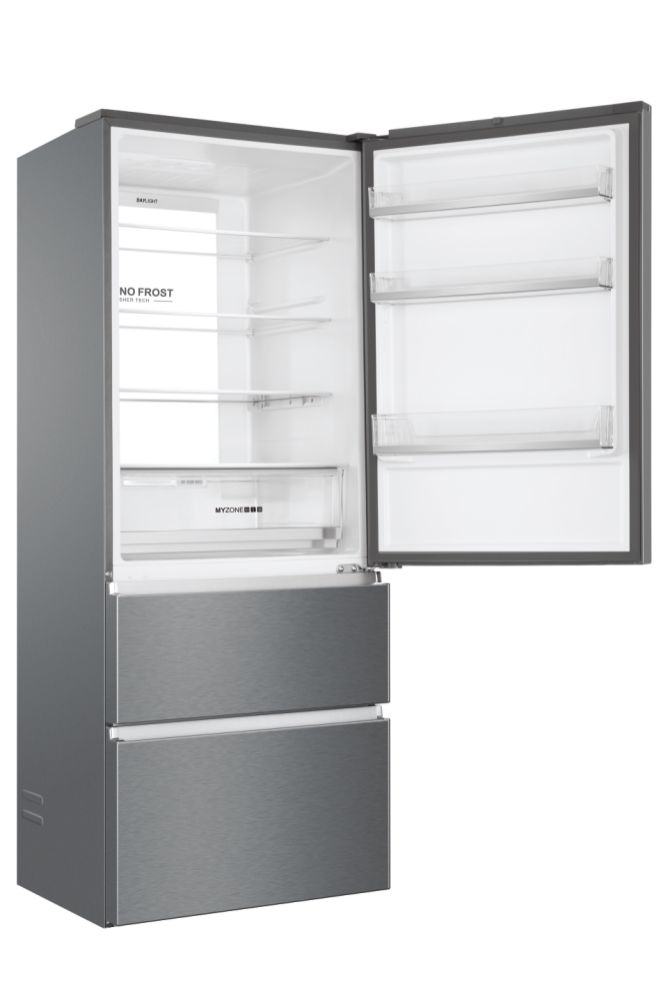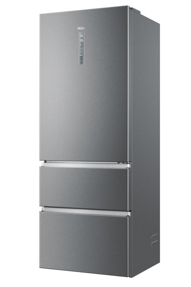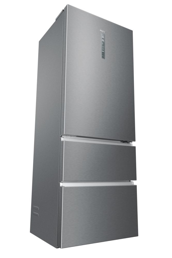Haier 3D 70 Serie 3 HTOPMNE7193. Capacità netta totale: 450 L. Cerniera porta: Destra. Classe climatica: T, Emissione acustica: 37 dB. Capacità netta frigorifero: 310 L, No Frost (frigorifero), Sistema Multi-Airflow (frigorifero), Luce interna. Capacità netta congelatore: 140 L, Capacità di congelamento: 10 kg/24h, No Frost (congelatore). Compartimento zona fresca. Classe efficienza energetica: E, Consumo energetico annuo: 297 kWh. Colore del prodotto: Platino, Acciaio inox