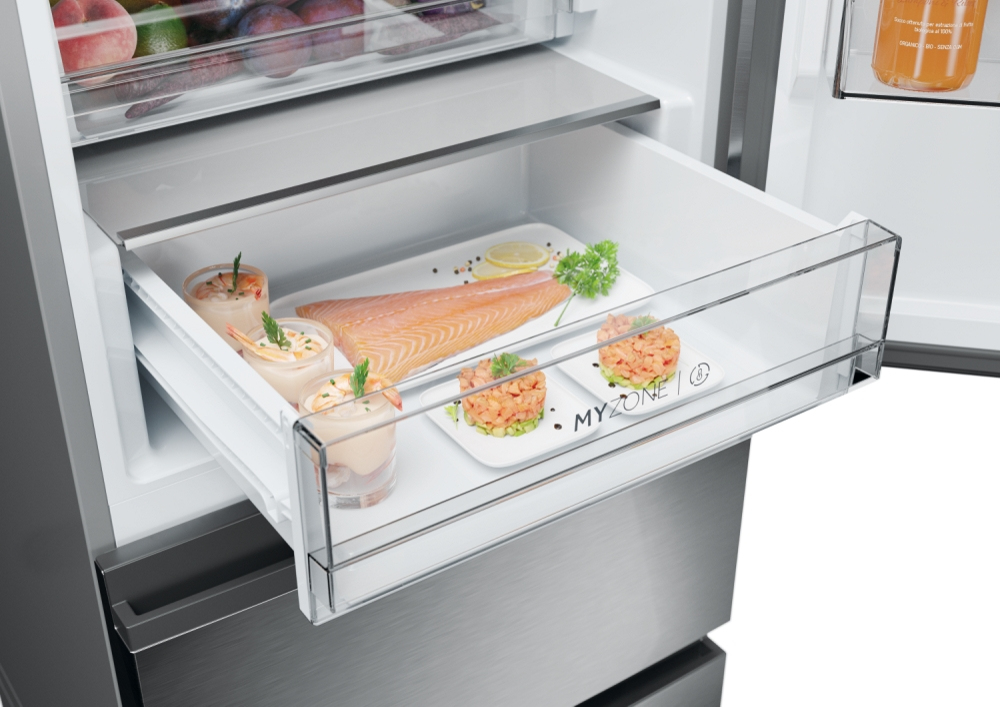 Con una larghezza di 60 cm, i frigoriferi 3D 60 di Haier sono dotati di un innovativo freezer a cassettoni che permette di usare meglio lo spazio per conservare i cibi congelati, e assicura un rapido accesso all’intero freezer per risparmiare fino al 60% di energia in più rispetto a modelli combinati simili. Intanto le Fresher Techs® regolano costantemente le condizioni operative per preservare la qualità degli alimenti. I frigoriferi 3D 60 Serie 5 di Haier assicurano la conservazione perfetta degli alimenti grazie alle zone dedicate che controllano temperatura e/o umidità per preservare il cibo più a lungo, oltre alle altre soluzioni di refrigerazione e conservazione.
