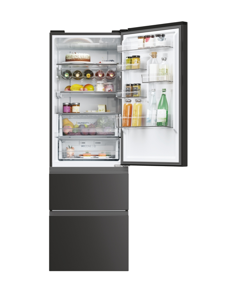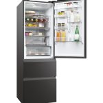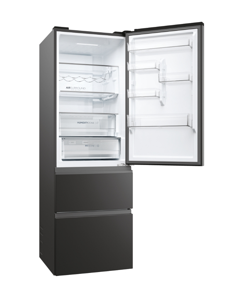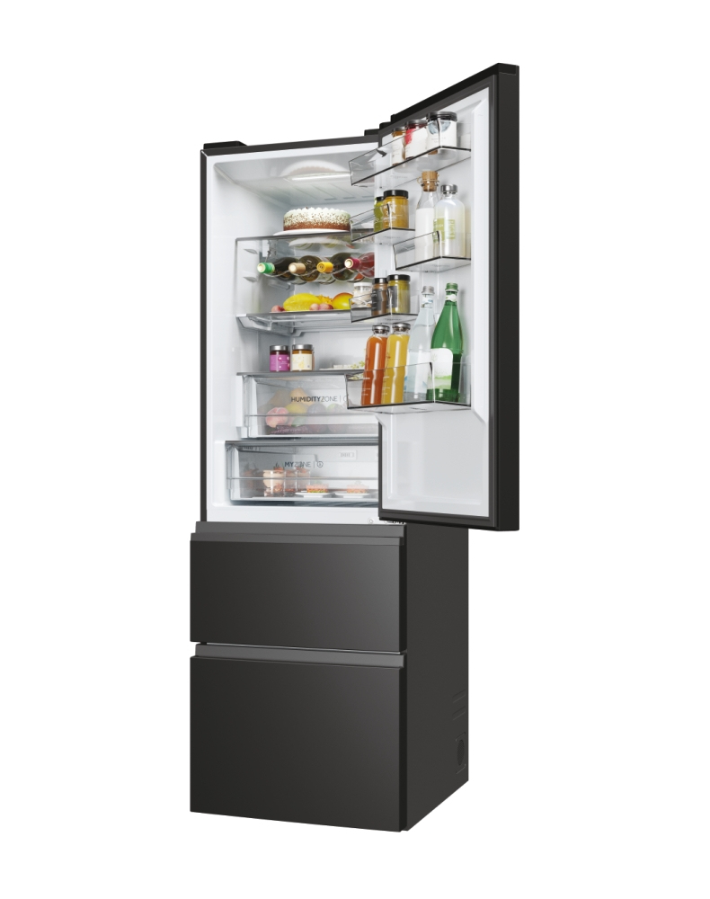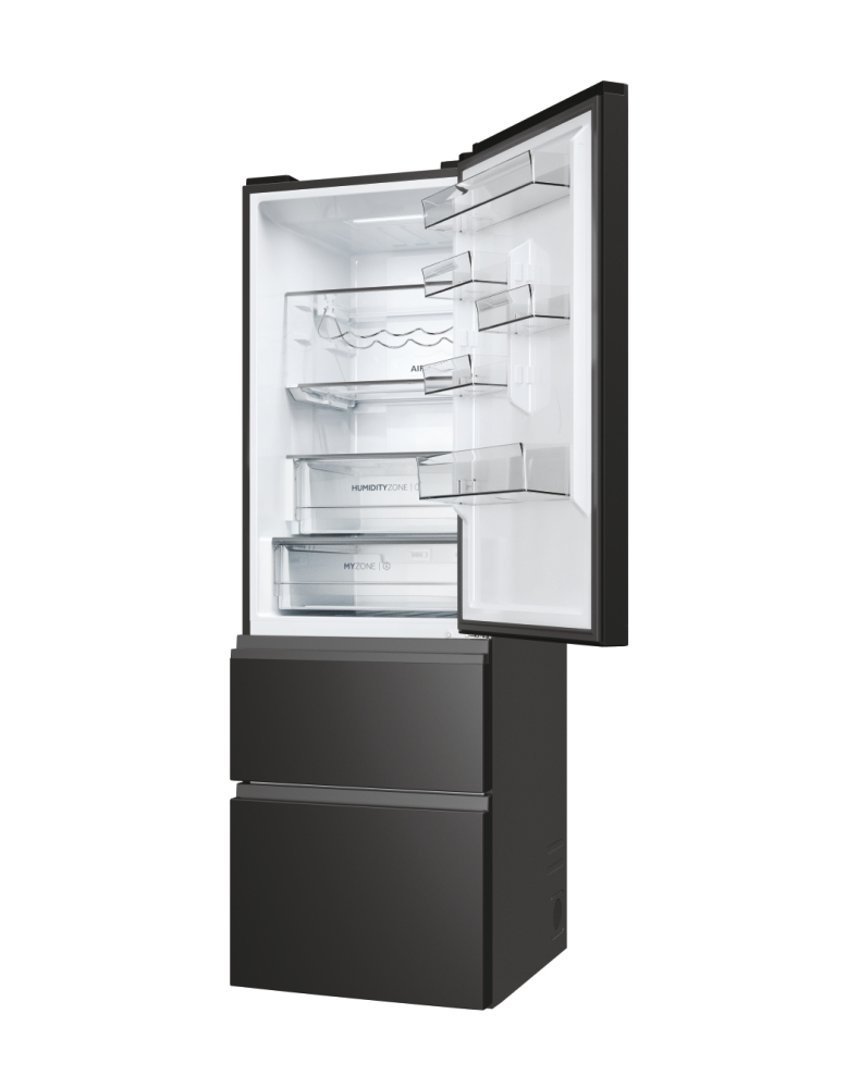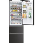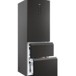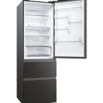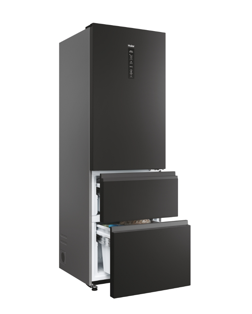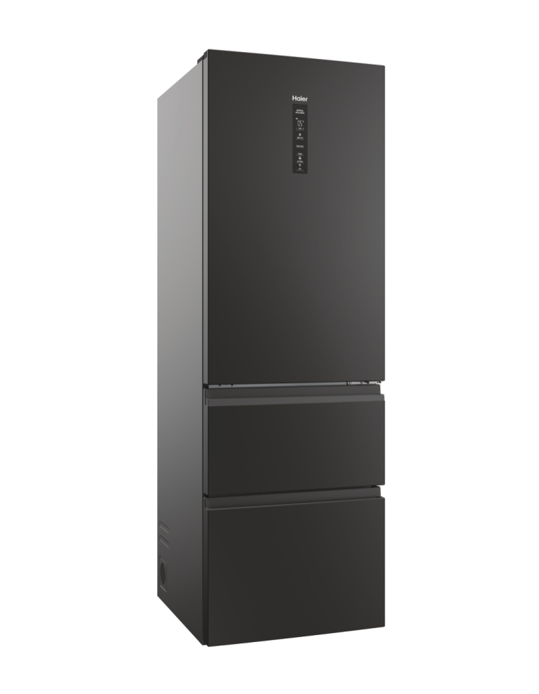 Haier 3D 60 Serie 5 HTW5618DNPT. Capacità netta totale: 360 L. Cerniera porta: Destra. Classe climatica: T, Emissione acustica: 35 dB. Capacità netta frigorifero: 235 L, No Frost (frigorifero), Sistema Multi-Airflow (frigorifero), Luce interna, Numero di ripiani frigorifero: 3. Capacità netta congelatore: 125 L, Capacità di congelamento: 10 kg/24h, No Frost (congelatore). Classe efficienza energetica: D, Consumo energetico annuo: 217 kWh. Colore del prodotto: Nero