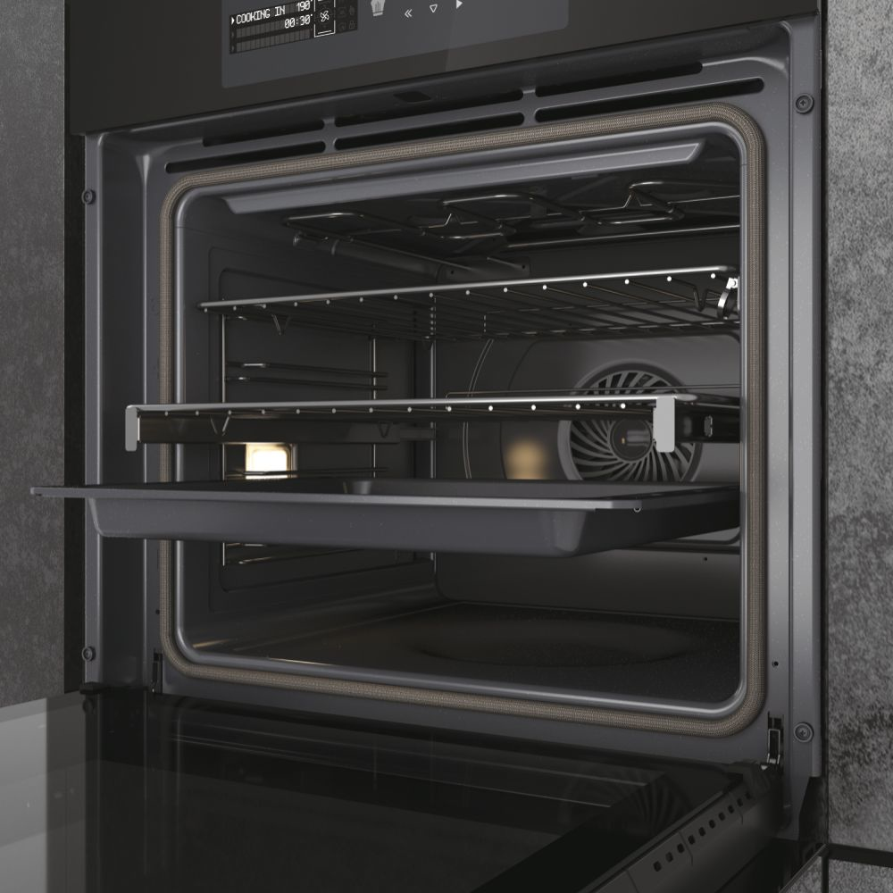 I-Message Serie 6, il forno connesso Haier con schermo digitale. Le sue linee eleganti si traducono in uno stile minimalista, ulteriormente arricchito dalla squisita combinazione di vetro scuro con alluminio total black e finiture spazzolate e lisce a contrasto. All’interno di questo forno all’avanguardia, sono presenti intelligenza artificiale e molteplici funzioni, che garantiscono risultati professionali: Climatech, per una perfetta distribuzione del calore; Cook with Me, un assistente personale in cucina che funziona con l’app hOn; il display dei messaggi digitali per guidarti attraverso l’ampia gamma di opzioni e ricette facili da seguire. I-Message Serie 6 ti porterà nella nuova era della cucina connessa.