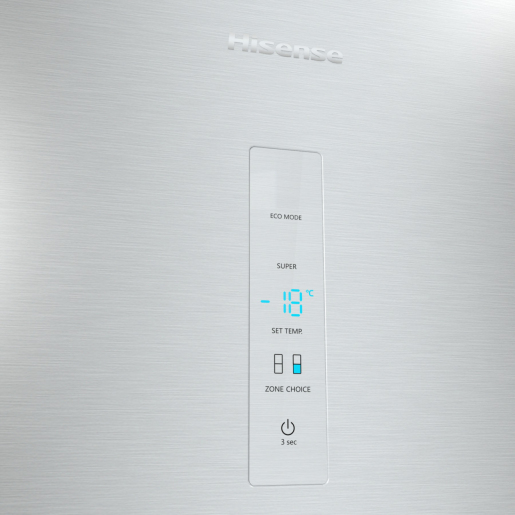 Hisense RB434N4BCB. Capacità netta totale: 331 L. Cerniera porta: Destra, Tipo di display: LED. Classe climatica: SN-T, Emissione acustica: 35 dB. Capacità netta frigorifero: 235 L, No Frost (frigorifero), Sistema Multi-Airflow (frigorifero), Luce interna. Capacità netta congelatore: 96 L, Capacità di congelamento: 10 kg/24h, No Frost (congelatore). Classe efficienza energetica: B, Consumo energetico annuo: 125 kWh. Colore del prodotto: Grigio, Acciaio inox