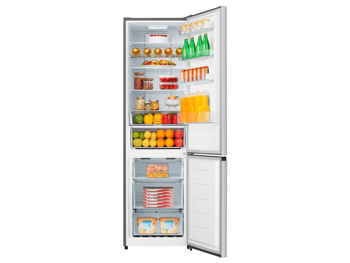 Il frigorifero combinato Hisense RB440N4ACD da 336 l (238 l frigo + 98 l freezer) sfrutta la tecnologia Total No Frost per un’aria fredda distribuita uniformemente, senza formazione di ghiaccio, ed elimina la necessità di sbrinamento manuale. Il pannello di controllo touch consente di regolare temperature e funzioni (Eco, Super Freeze) con un solo tocco. All’interno, ripiani in vetro temperato e un’elegante portabottiglie cromato liberano spazio e resistenza, mentre il cassetto CrispZone con SmartHumidity conserva frutta e verdura al giusto livello di umidità. •Total No frost: Più avanzata dei normali sistemi anti-brina, l’innovativa tecnologia Total No Frost di Hisense garantisce una circolazione uniforme dell’aria fredda nel congelatore, prevenendo la formazione di ghiaccio ed eliminando la necessità di sbrinamento manuale.