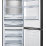 Hisense RB645N4BFE. Capacità netta totale: 495 L. Cerniera porta: Destra, Tipo di display: LED. Classe climatica: SN-T, Emissione acustica: 36 dB. Capacità netta frigorifero: 345 L, No Frost (frigorifero), Sistema Multi-Airflow (frigorifero), Luce interna. Capacità netta congelatore: 150 L, Capacità di congelamento: 10 kg/24h, No Frost (congelatore). Classe efficienza energetica: E, Consumo energetico annuo: 298 kWh. Colore del prodotto: Nero