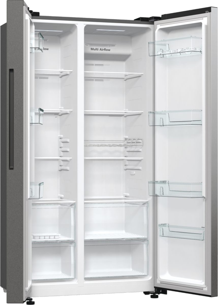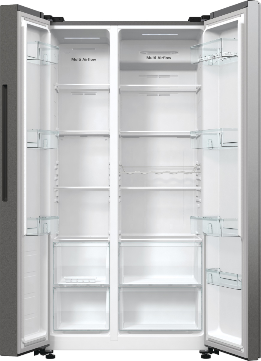 Il frigorifero Side by Side Hisense RS711N4ACE combina ampia capacità, versatilità d’uso e tecnologia avanzata in un design elegante in acciaio inox. Con 550 litri totali offre spazio abbondante e ben organizzato. La funzione Total No Frost elimina la formazione di brina, mentre il raffreddamento Multi Air Flow assicura una temperatura uniforme in ogni zona. Il compressore inverter garantisce efficienza e silenziosità, e la funzione Super Freeze consente di congelare rapidamente gli alimenti. Grazie alla modalità Convert, puoi trasformare il vano freezer in frigorifero con un semplice tocco, adattando lo spazio alle tue esigenze. •Funzione di conversione: Grazie alla funzione Convert, basta premere un pulsante per trasformare senza sforzo il vano congelatore in una zona refrigerata, offrendo ampio spazio per conservare un’ampia gamma di snack o bevande.