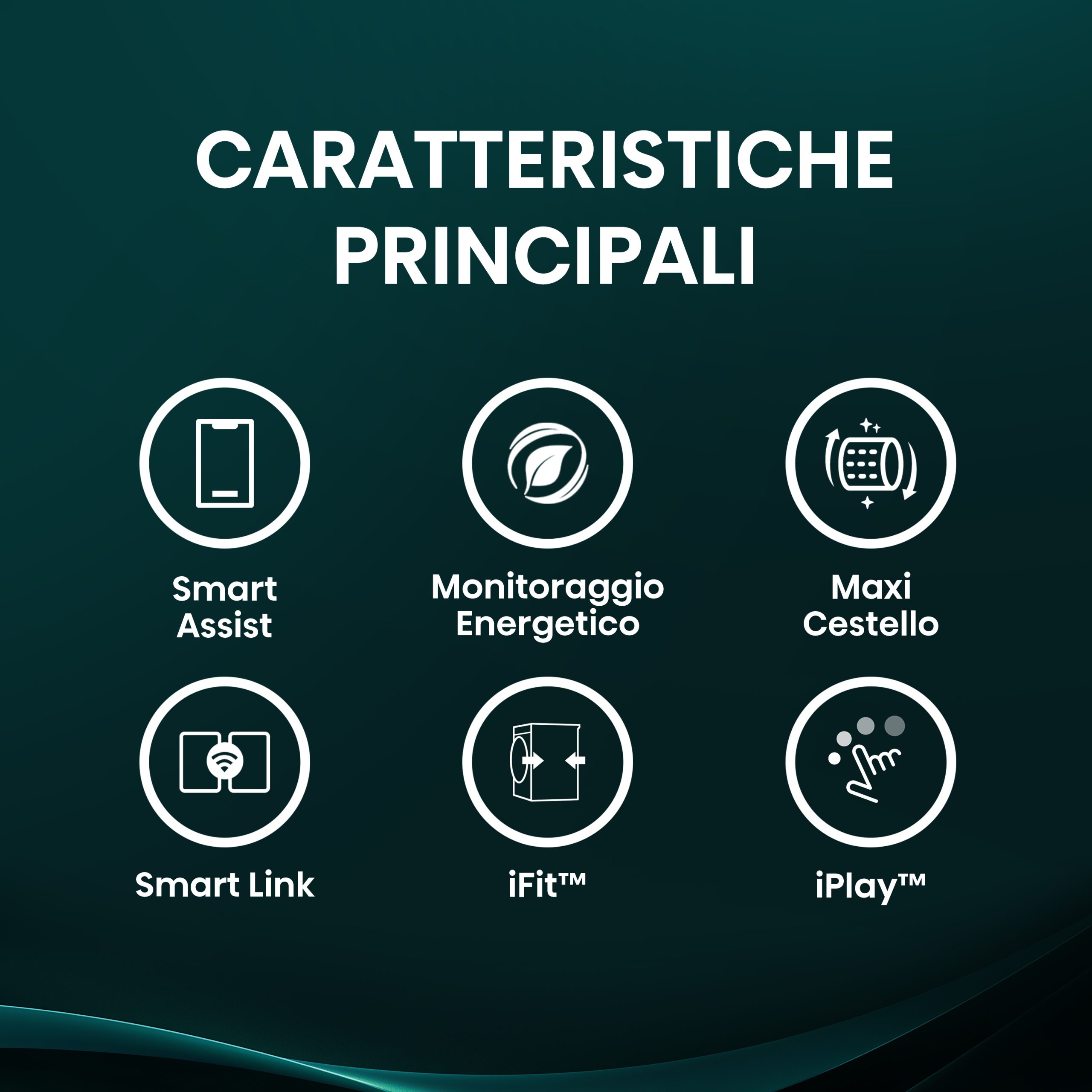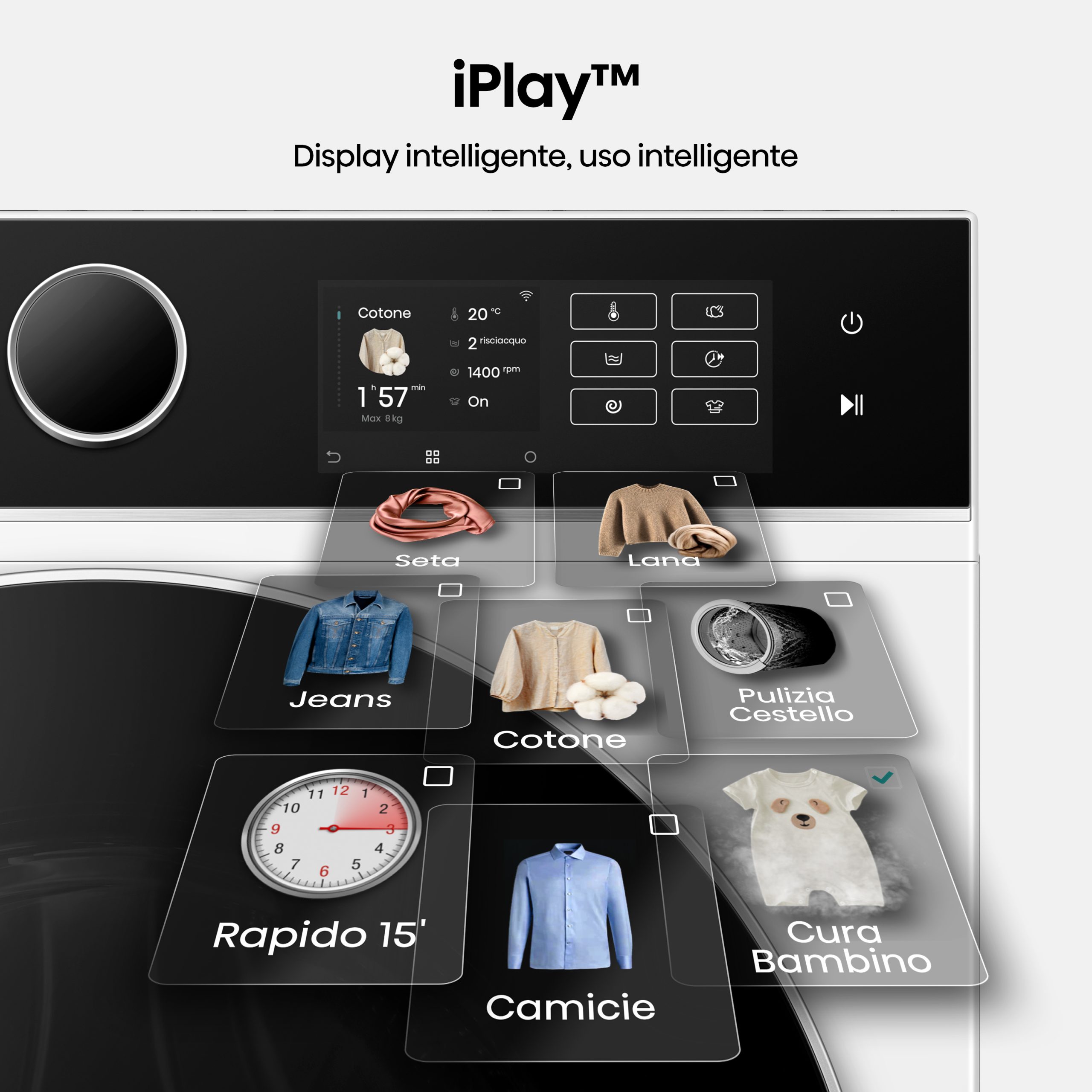 Programmi di lavaggio Quick 15min, Quick 30min, Vapore Cotone, Cotone 20 °C, Delicati/Seta, Eco 40-60°C, Ricambio dell'aria a scopo igienico, Igiene/Allergy Care, Mix, Quick 15min, Silent, AI intelligente, A tamburo, Sintetico, Lana 20°C, A colori, Cotone, Cura quotidiana, Eco 40-60°C, A mano/Lana, Intenso, Mix, Rapido, Rapido 14min, Stain care, Vapore, Sintetico