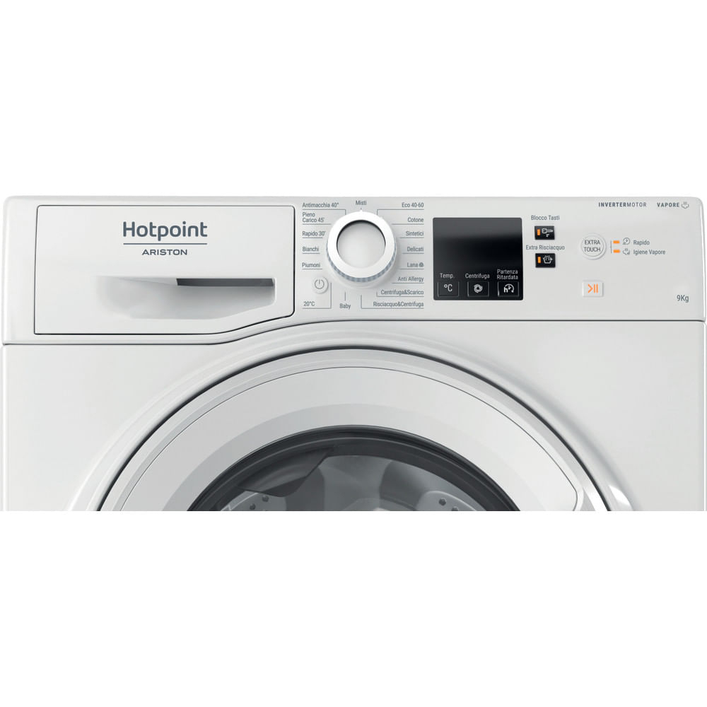 Caratteristiche di questa lavatrice a carica frontale a libera installazione Hotpoint Ariston: cestello extra-spazioso e ampio da 9,0 kg. Classe energetica A. Centrifuga a 1400 giri al minuto, rapida ed efficiente. Colore bianco.