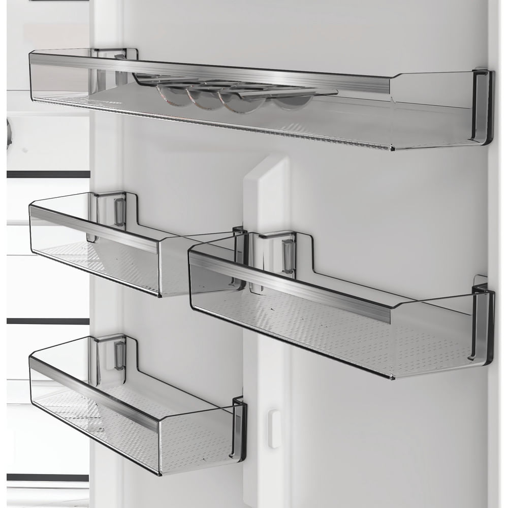 Caratteristiche di questo frigorifero combinato a libera installazione Hotpoint Ariston: modello alto e capiente, adatto per le esigenze di tutta la famiglia. Ripiani in vetro con profili anteriori che aggiungono robustezza, eleganza e maggiore sicurezza. Comodo porta-bottiglie per conservare le bottiglie con sicurezza.