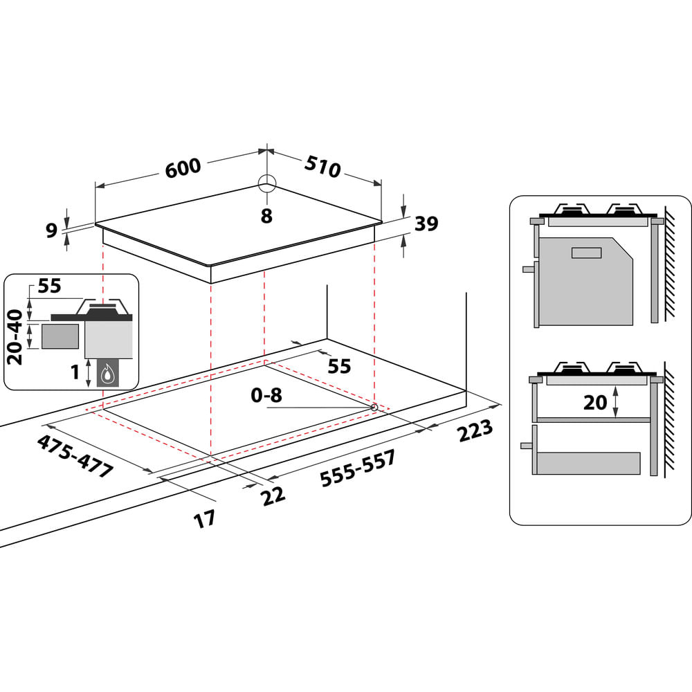 | Dimensione della larghezza del piano cottura (cm) | 60 |