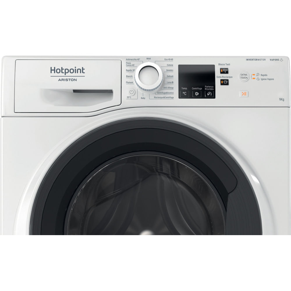 Caratteristiche di questa lavatrice a carica frontale a libera installazione Hotpoint Ariston: cestello extra-spazioso e ampio da 9,0 kg. Classe energetica A. Centrifuga a 1400 giri al minuto, rapida ed efficiente. Colore bianco.