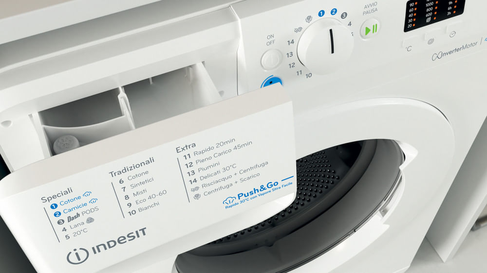 Caratteristiche di questa lavatrice a carica frontale a libera installazione Indesit: cestello spazioso da 8,0 kg. Classe energetica A. Centrifuga a 1400 giri al minuto, rapida ed efficiente. Colore bianco.