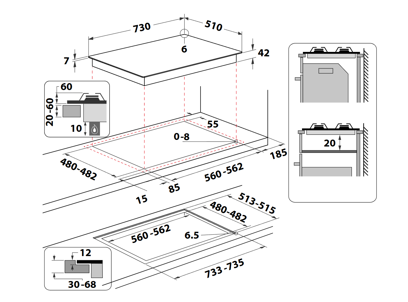 | Dimensione della larghezza del piano cottura (cm) | |