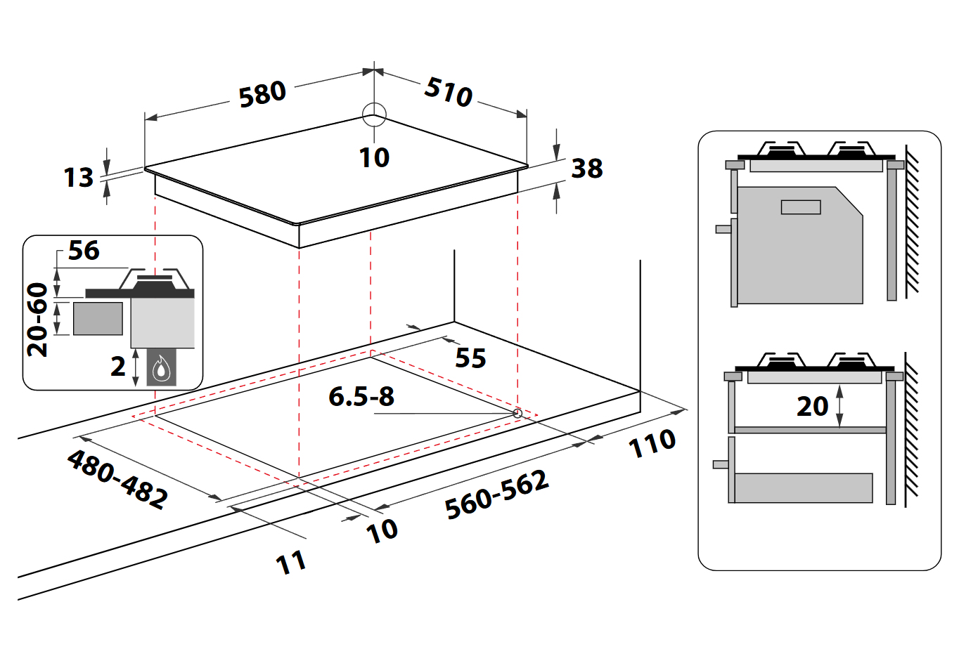 Dimensione della larghezza del piano cottura (cm)60