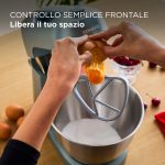 Kenwood GO l’impastatrice planetaria alta solo 30cm con pratica maniglia per riporla comodamente nel cassetto della cucina, potenza motore 800W, corpo in metallo, utilizzo frontale, movimento planetario, 2 prese motore, 6 velocità più azione Pulse, 3 ganci di miscelazione ( frusta filo in acciaio inox, frusta K e gancio impastatore in metallo), ciotola in acciaio inox da 4L, comodo vano avvolgicavo, paraschizzi e misurino.