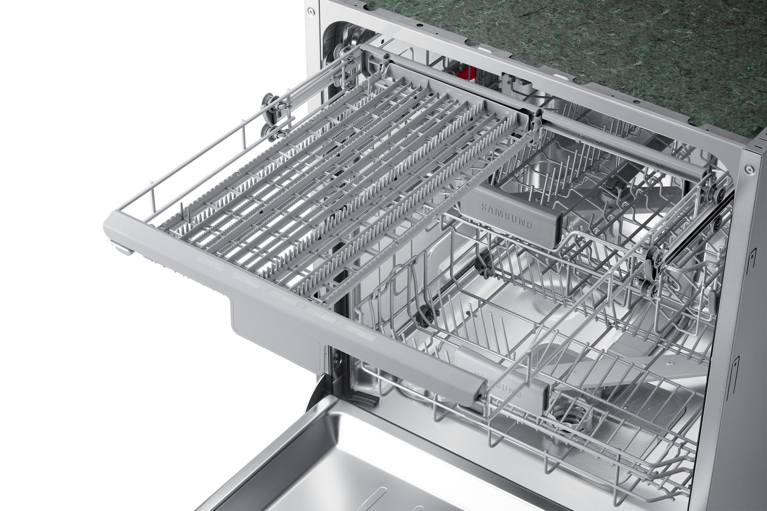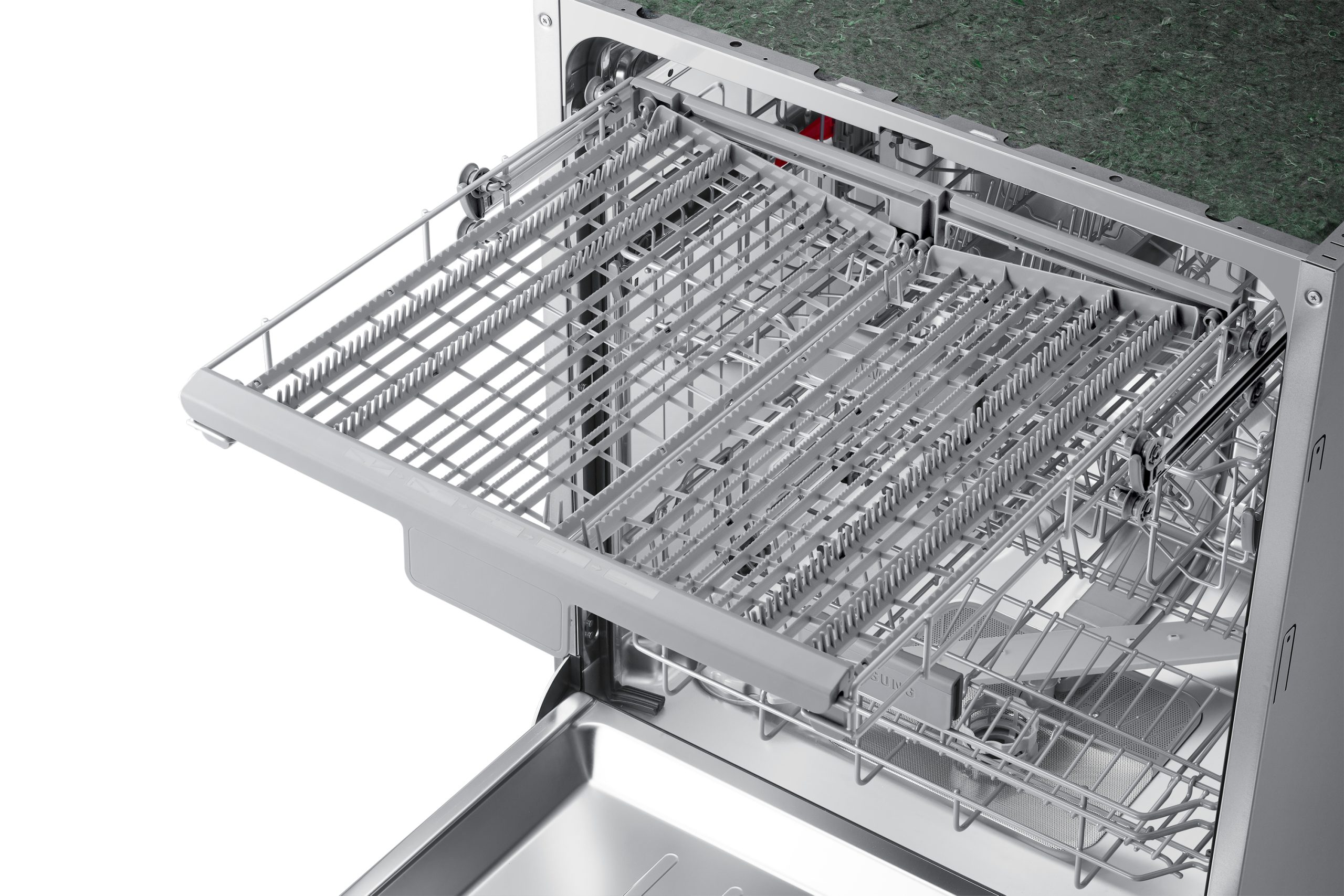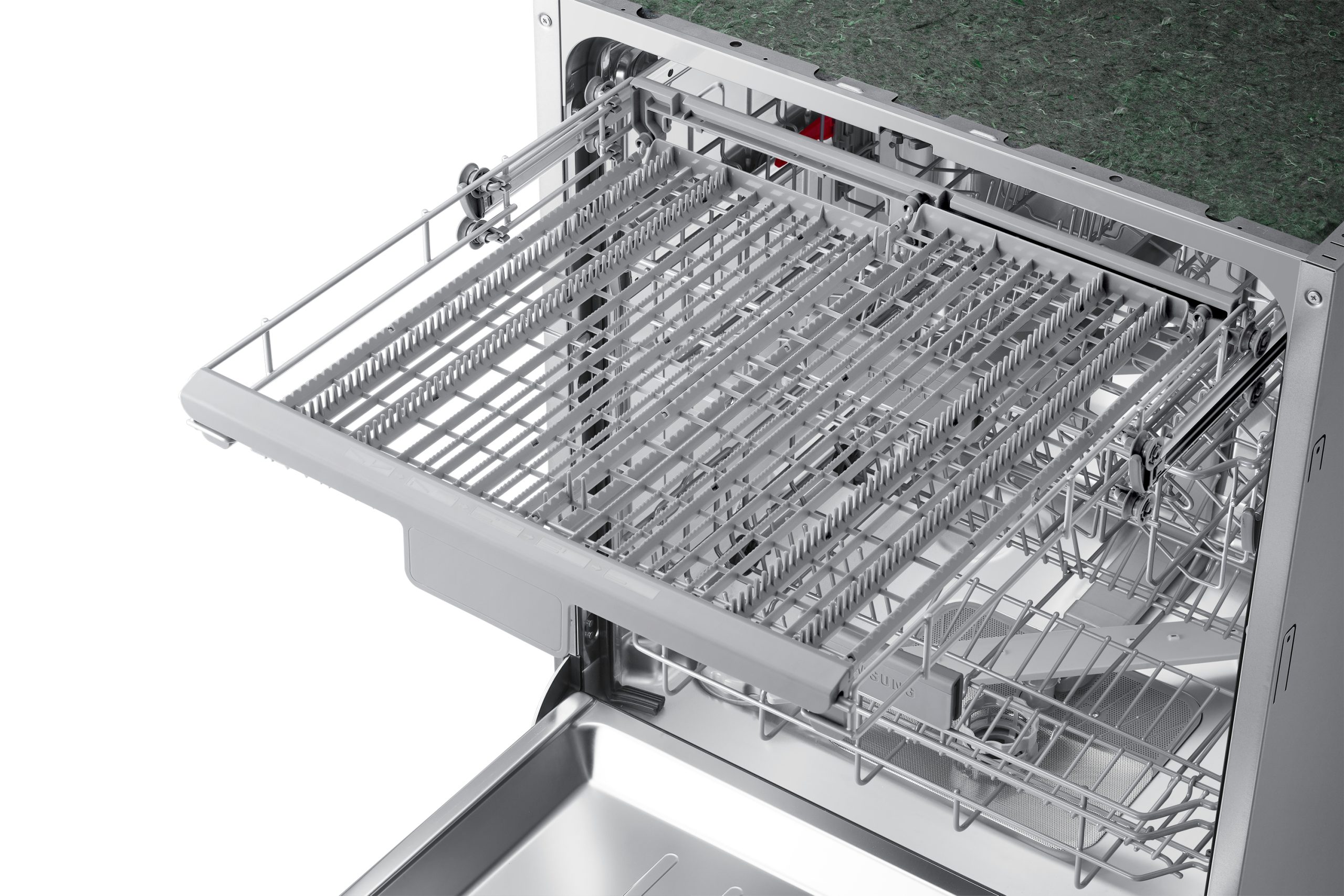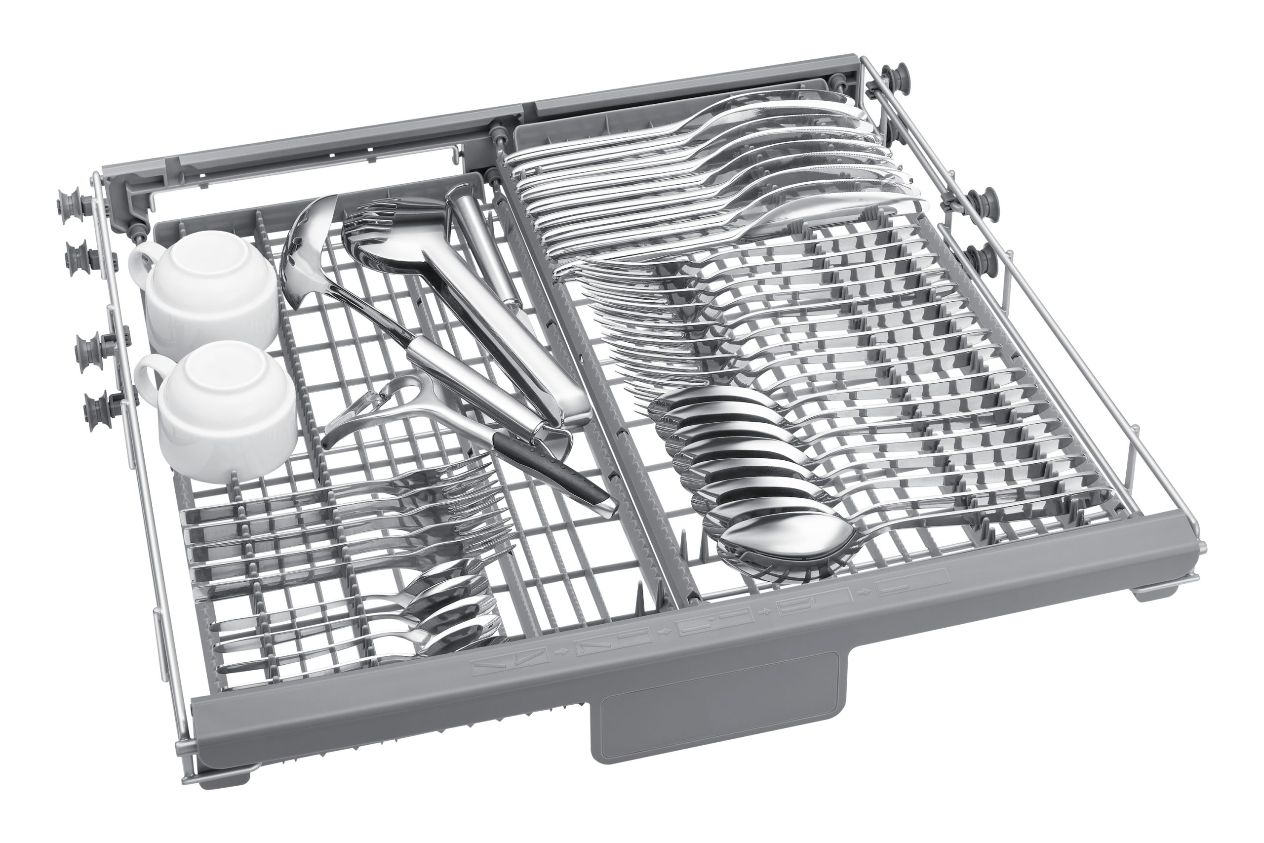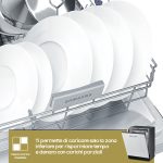 Carica più facilmente i piatti di dimensioni e forme diverse. Grazie alla funzione Auto Adjust potrai alzare o abbassare rapidamente il cestello superiore, guadagnando spazio nel cestello inferiore per posizionare piatti di dimensioni e forme diverse, ma anche pentole alte, vassoi e piatti da portata.