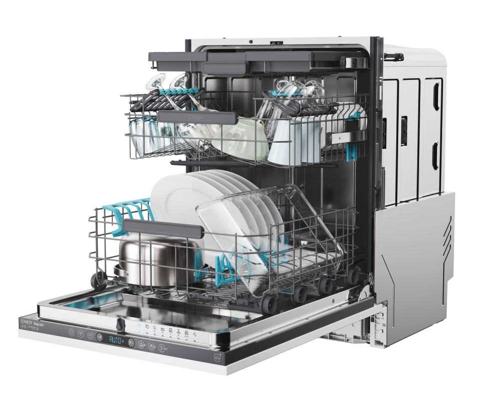 Candy Rapido’ è la lavastoviglie più veloce e spaziosa del mercato. È dotata di un’ampia gamma di cicli rapidi adatti a ogni esigenza, che semplificano l’utilizzo quotidiano anche grazie alla MAXI-TUB: la vasca più spaziosa in dimensioni standard per caricare le stoviglie più grandi.