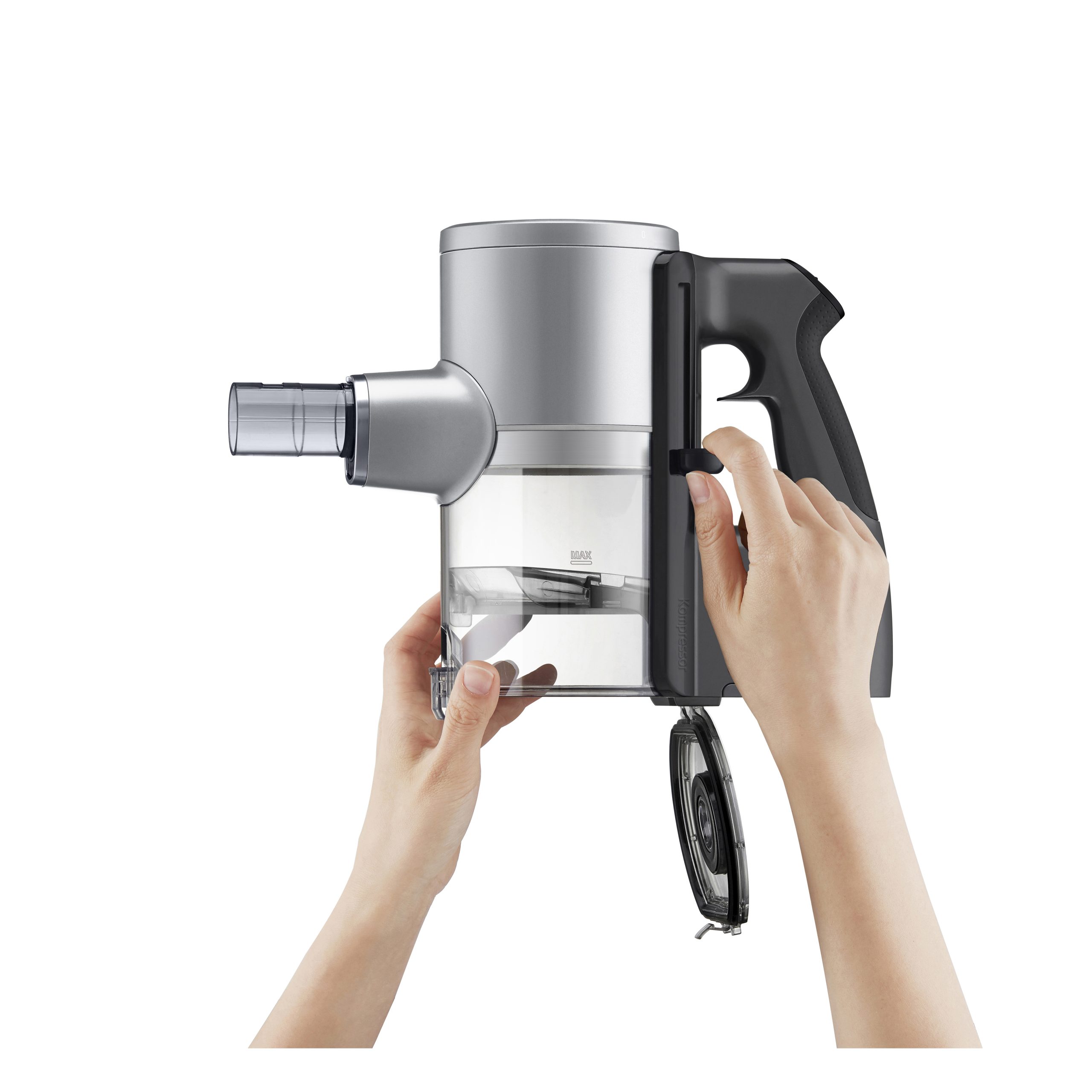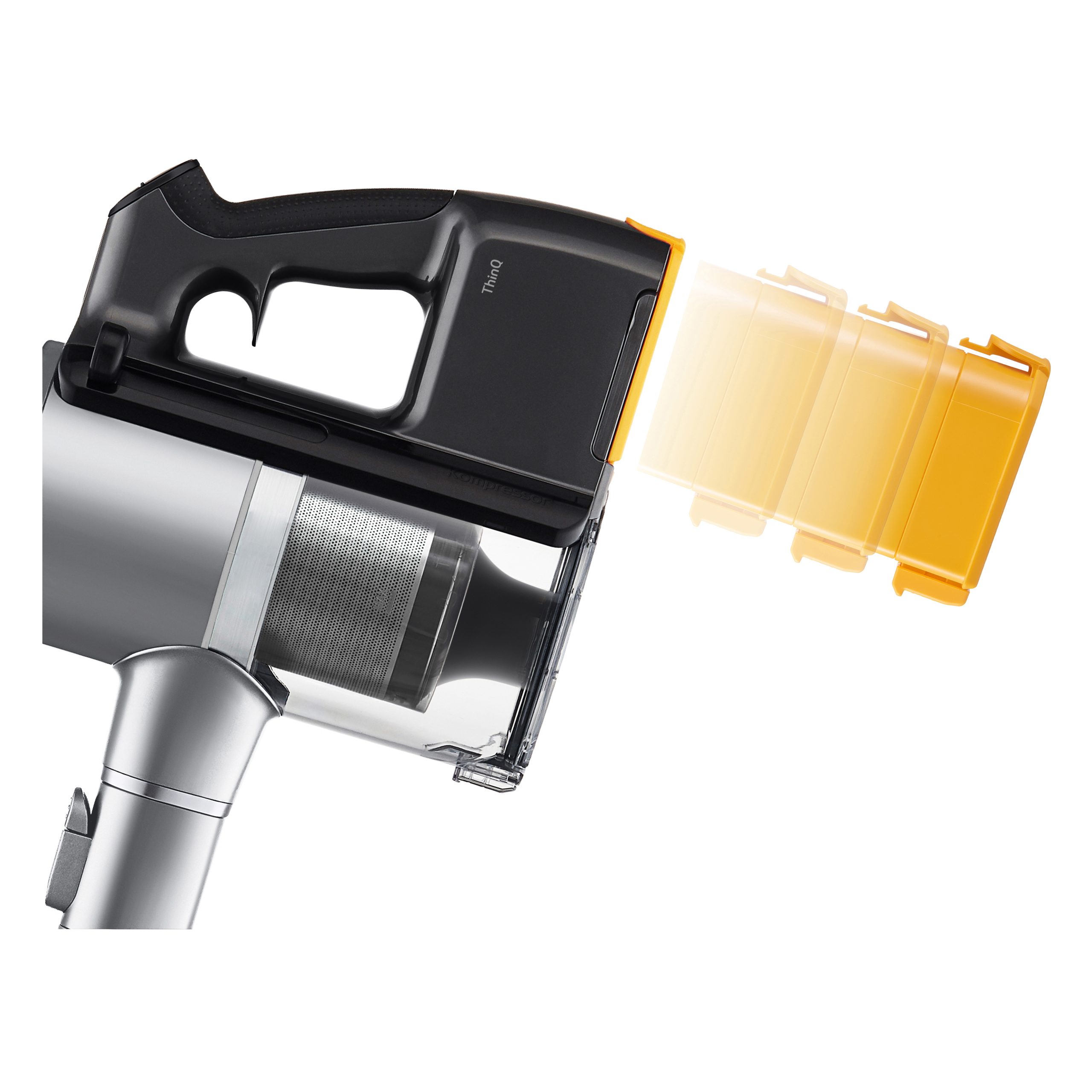 Grazie a questo brevetto di LG, puoi accumulare molta più polvere rispetto a un contenitore tradizionale. Azionando la levetta, compatti la polvere nel contenitore, recuperando quindi spazio per continuare a pulire la tua casa. Grazie a LG KOMPRESSOR™, infatti, la capacità del contenitore aumenta fino a 2,4 volte (da 0,44L a 1,05L), così puoi svuotarlo meno frequentemente.