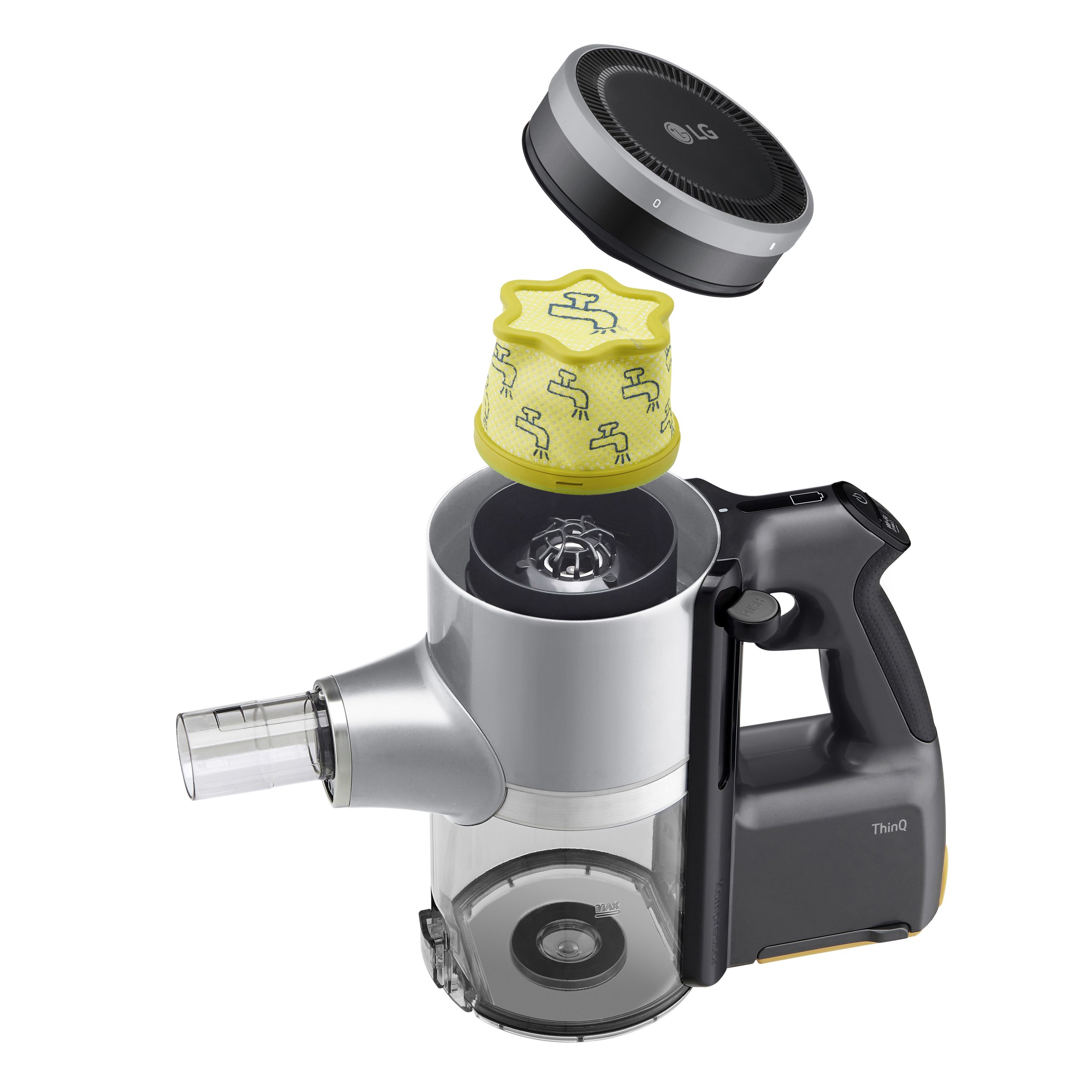 Collega l’aspirapolvere CordZero al Wi-Fi di casa e scarica l’app LG ThinQ sul tuo smartphone per gestirlo comodamente dal tuo smartphone. Puoi verificare la carica delle batterie, consultare le statistiche di utilizzo dell’aspirapolvere ed effettuare la diagnosi dell’aspirapolvere. Inoltre, l’app ti avvisa quando è ora