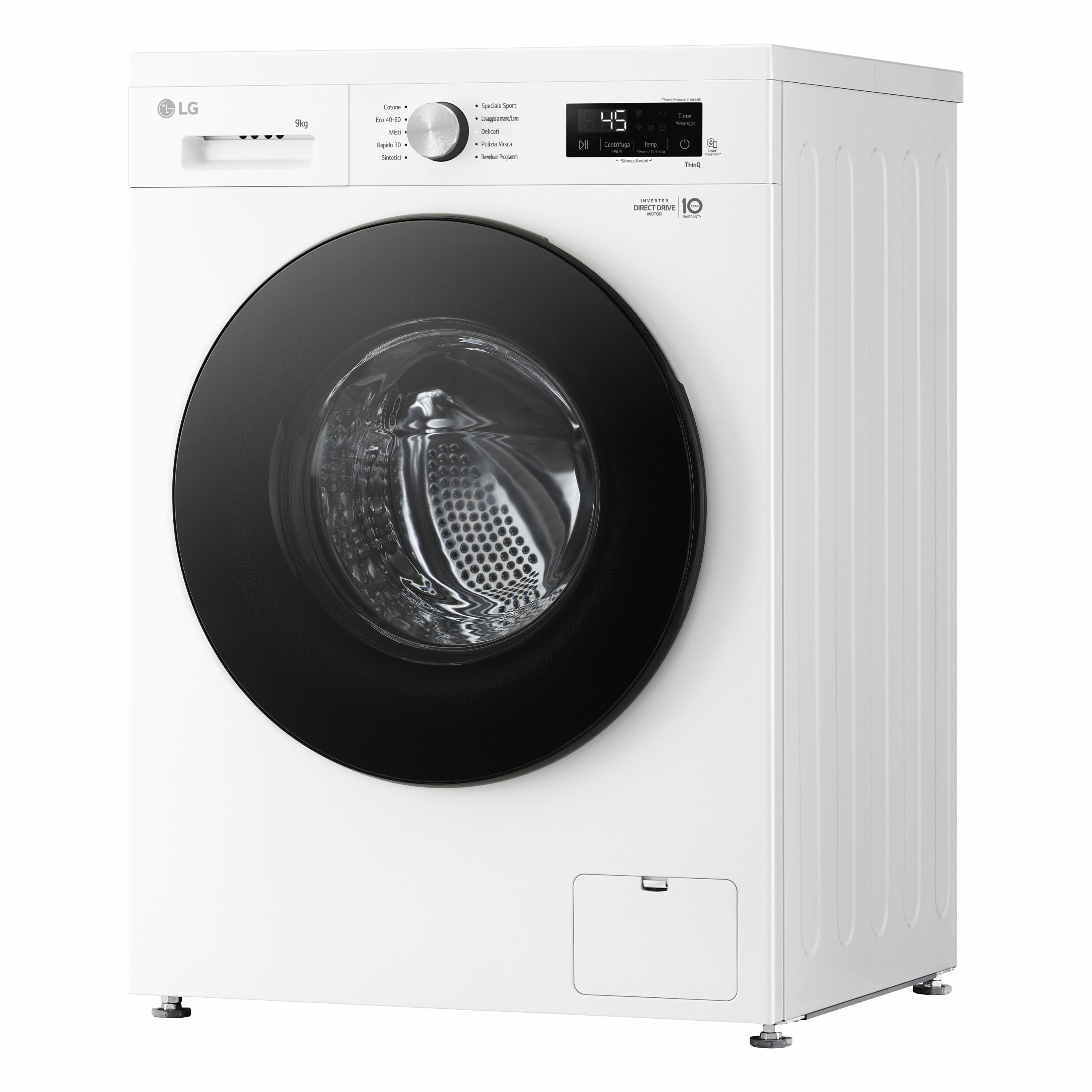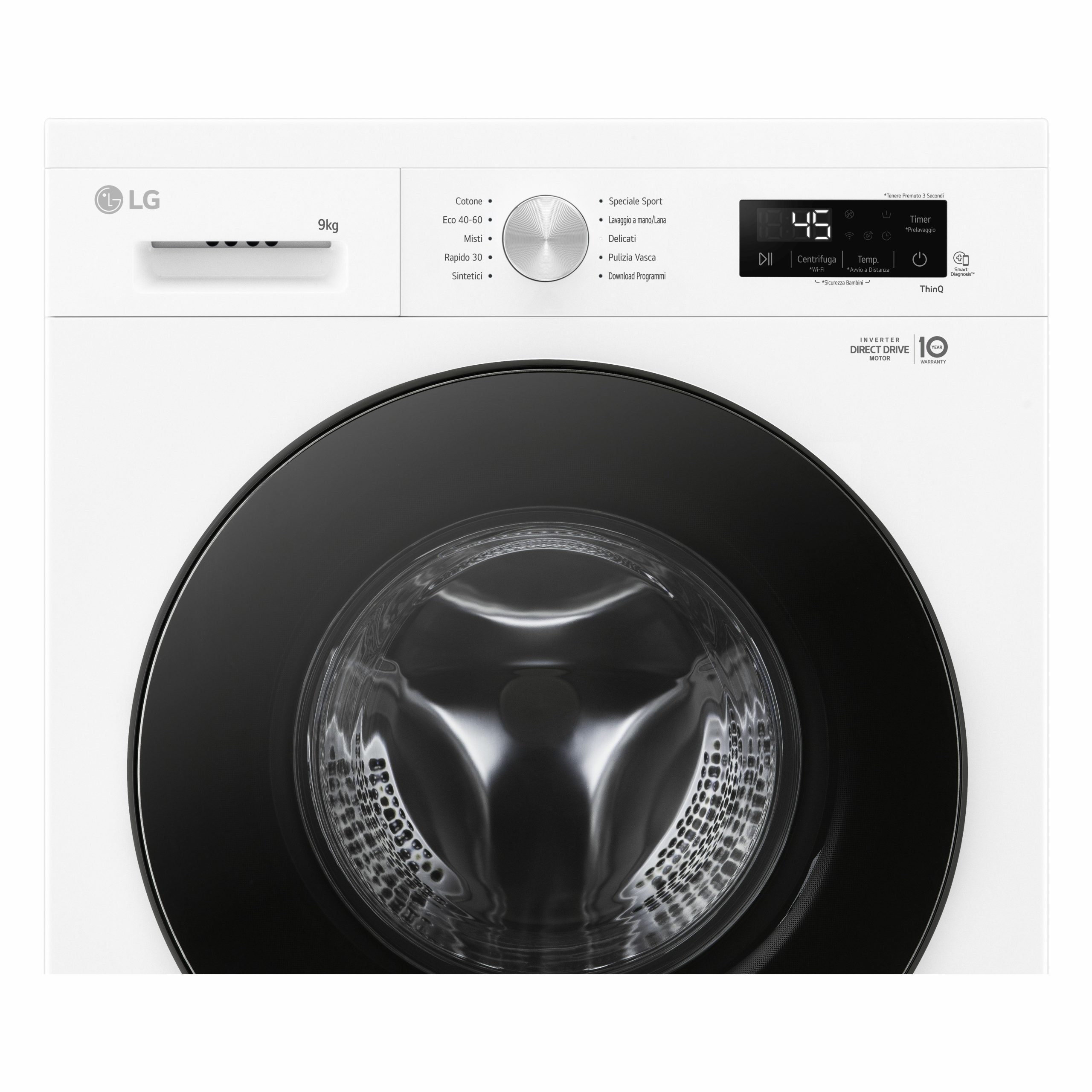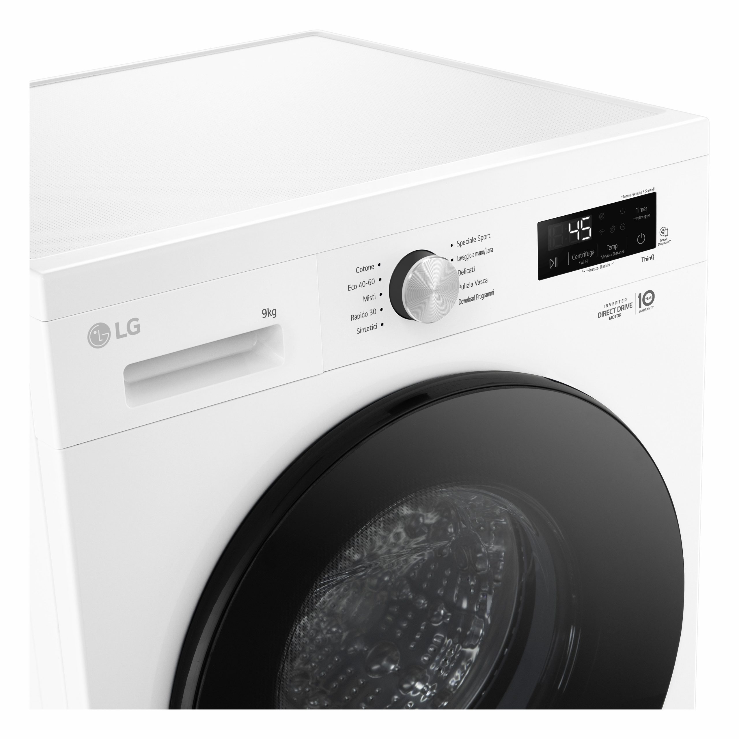 Collega la lavatrice al Wi-Fi di casa e scarica l’app LG ThinQ sul tuo smartphone per controllarla da remoto e monitorarne i consumi. Quando il ciclo di lavaggio è terminato, l’app ThinQ ti avviserà con una comoda notifica. Puoi scaricare anche nuovi programmi di lavaggio specifici in base al bucato che devi fare.”