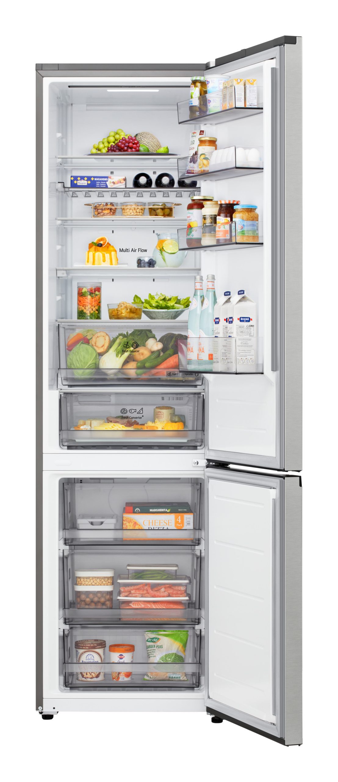 Ottieni il massimo controllo sulla conservazione dei tuoi alimenti grazie ai cassetti del frigo. Il FRESH Balancer™ ti permette di regolare l’umidità del cassetto frutta & verdura, scegliendo facilmente tra due modalità dedicate. Il cassetto Zero Gradi con FRESH Converter™, consente di impostare la temperatura ottimale per carne o pesce fresco, oppure trasformarlo in uno spazio frigo tradizionale, garantendo flessibilità e organizzazione perfetta.