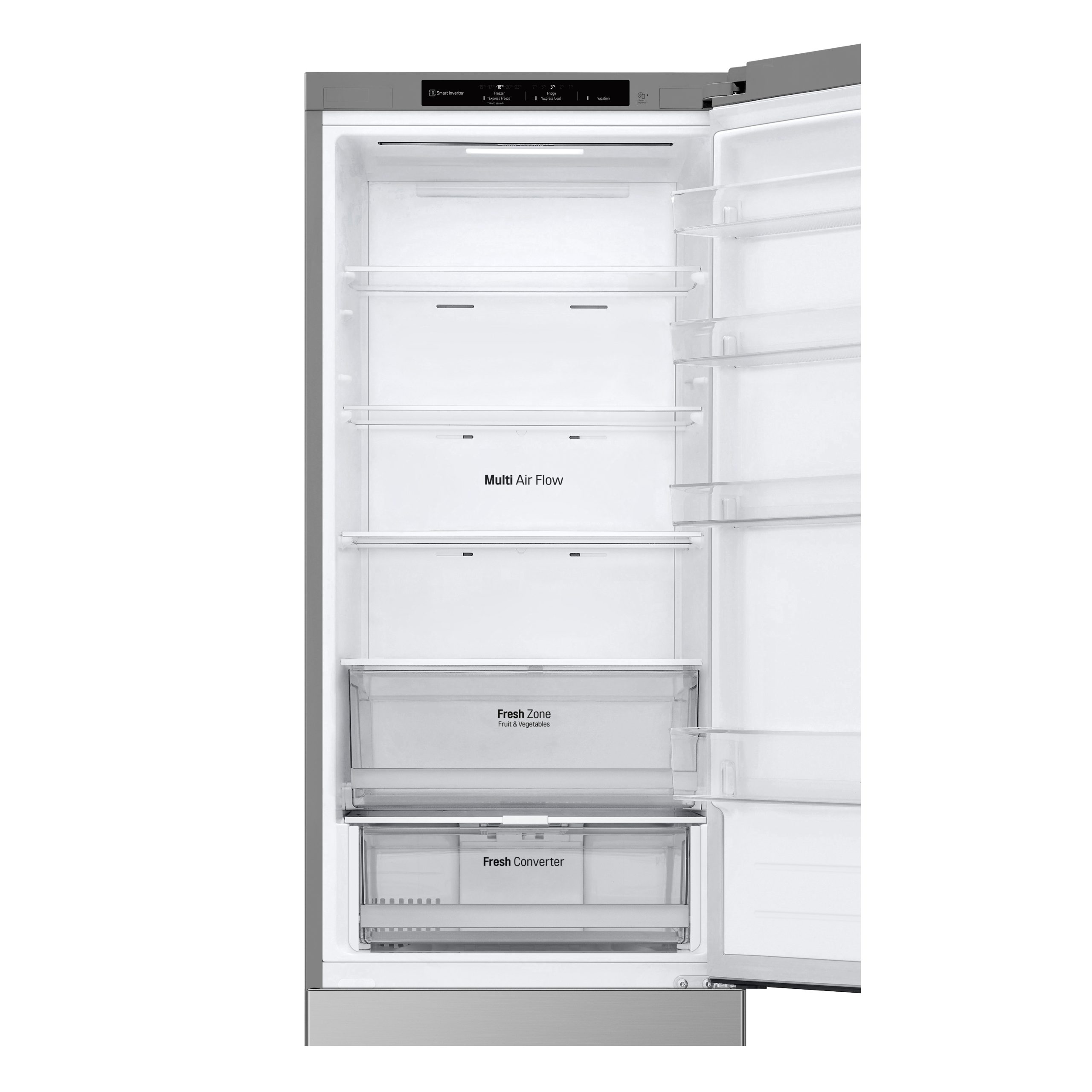 Questo sistema combina i vantaggi della tecnologia Total No Frost con il sistema di areazione diffusa Multi Air Flow, migliorando la conservazione degli alimenti grazie al flusso costante di aria fredda attraverso le bocchette poste su ogni ripiano.