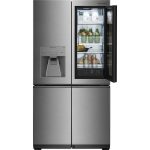 ‘Il sistema InstaView™ Door-in-Door™ consiste in un elegante pannello di vetro che si illumina con due semplici tocchi permettendo di guardare all’interno del frigorifero senza aprire la porta. In questo modo si riduce la dispersione di aria fredda e i cibi rimangono freschi più a lungo.