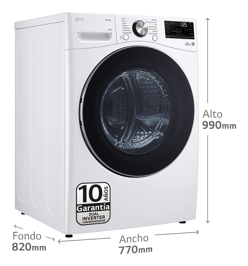 | Tecnologie LG (cura dei vestiti) | Big capacity, DUAL Dry™, Inverter Direct Drive Motor |