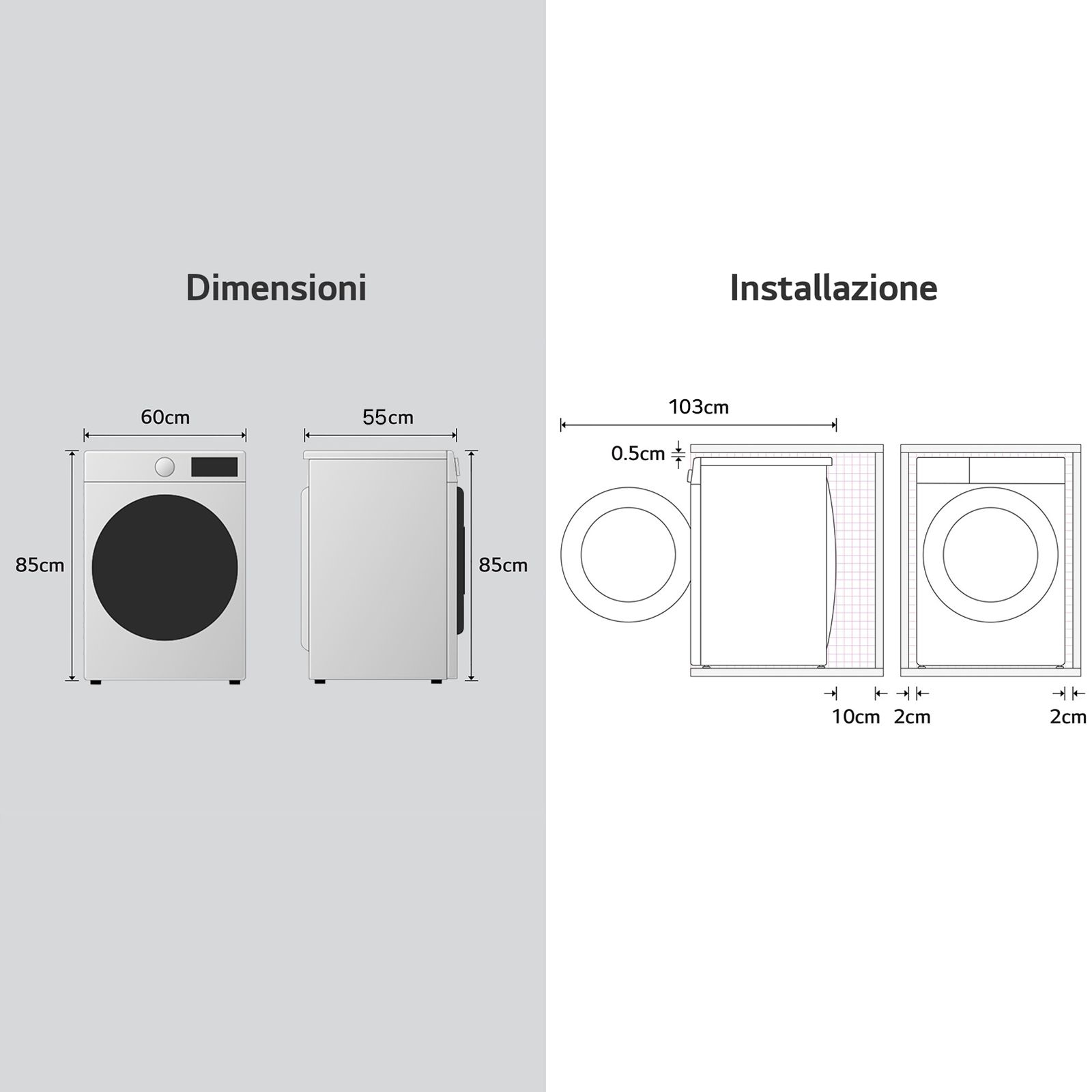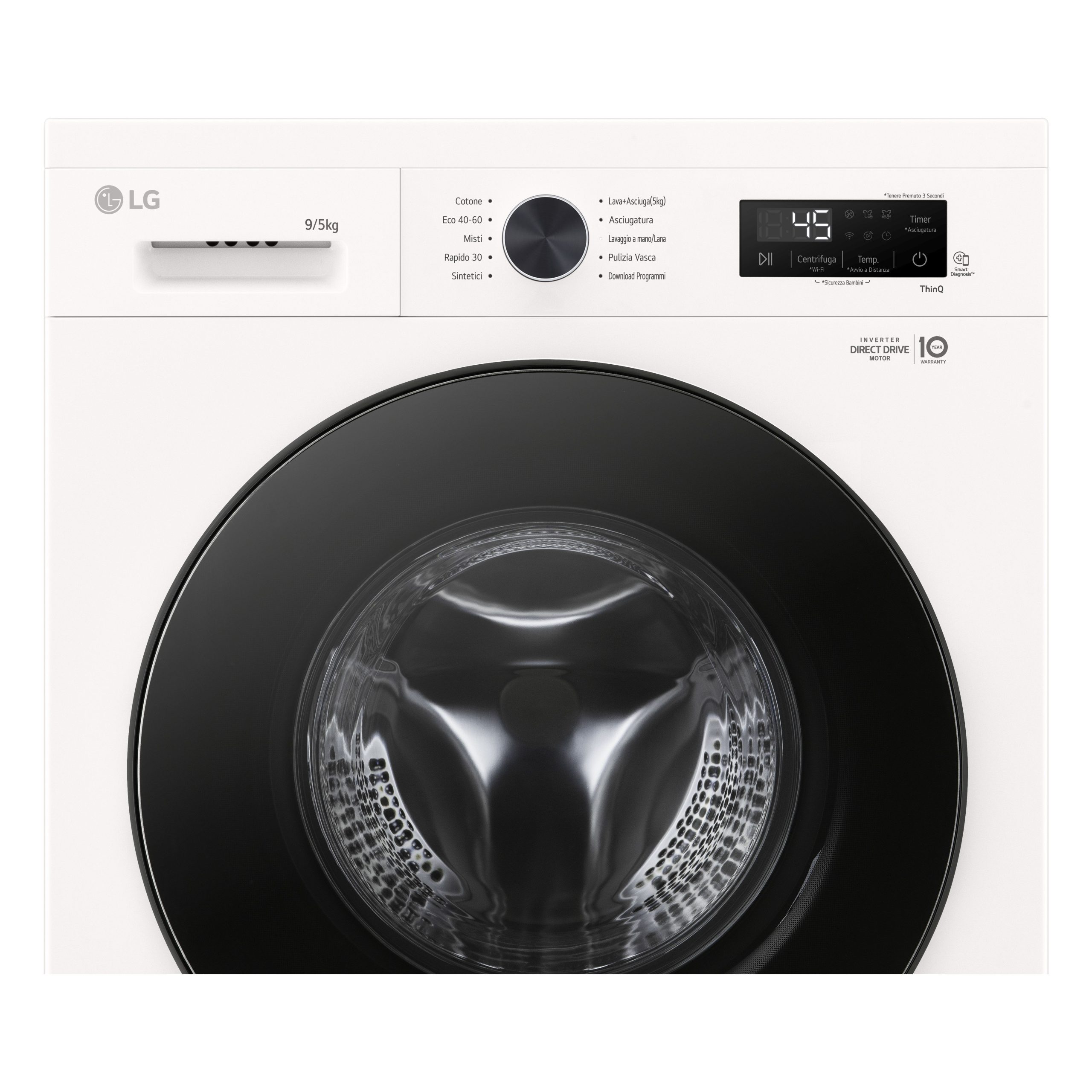 | Tecnologie LG (cura dei vestiti) | Allergy Care, DUAL Dry™, Inverter Direct Drive Motor, ThinQ™ |