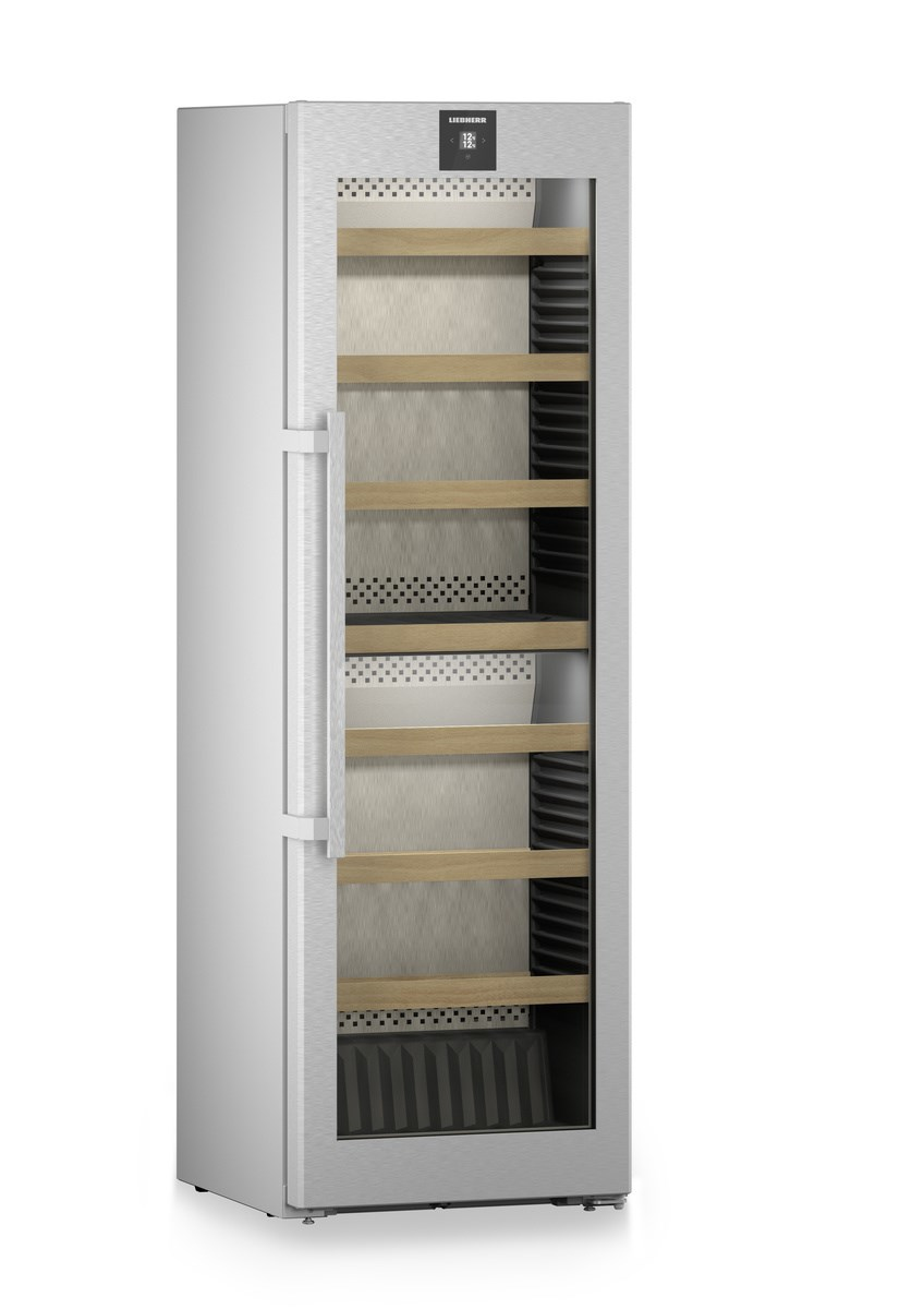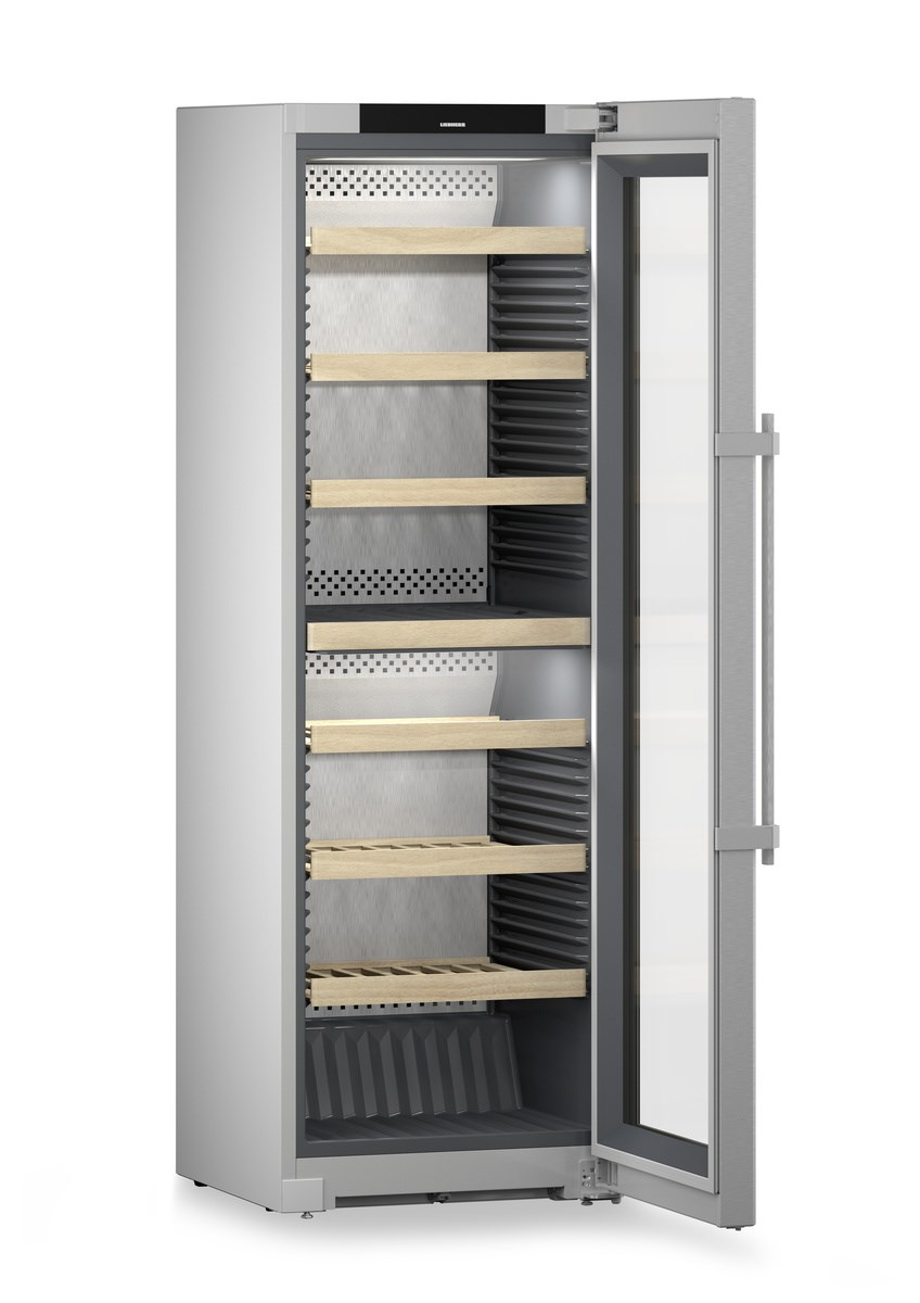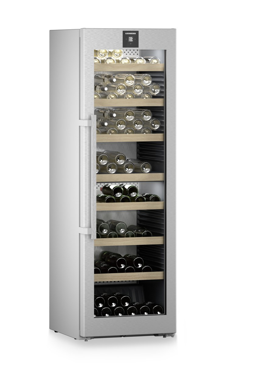 Liebherr WPsd 5252. Posizionamento dell’apparecchio: Libera installazione, Colore struttura: Argento, Colore interno: Grigio. Capacità bottiglie: 155 bottiglia/bottiglie, Tipo di prodotto: Cantinetta termoelettrica, Intervallo temperatura (zona 1): 5 – 20 °C. Tipo di controllo: Touch, Posizionamento del display: Sulla porta, Tipo di lampada: LED. Classe efficienza energetica: F, Consumo energetico annuo: 127 kWh, Scala di efficienza energetica: Da A a G. Larghezza: 597 mm, Profondità: 675 mm, Altezza: 1854 mm