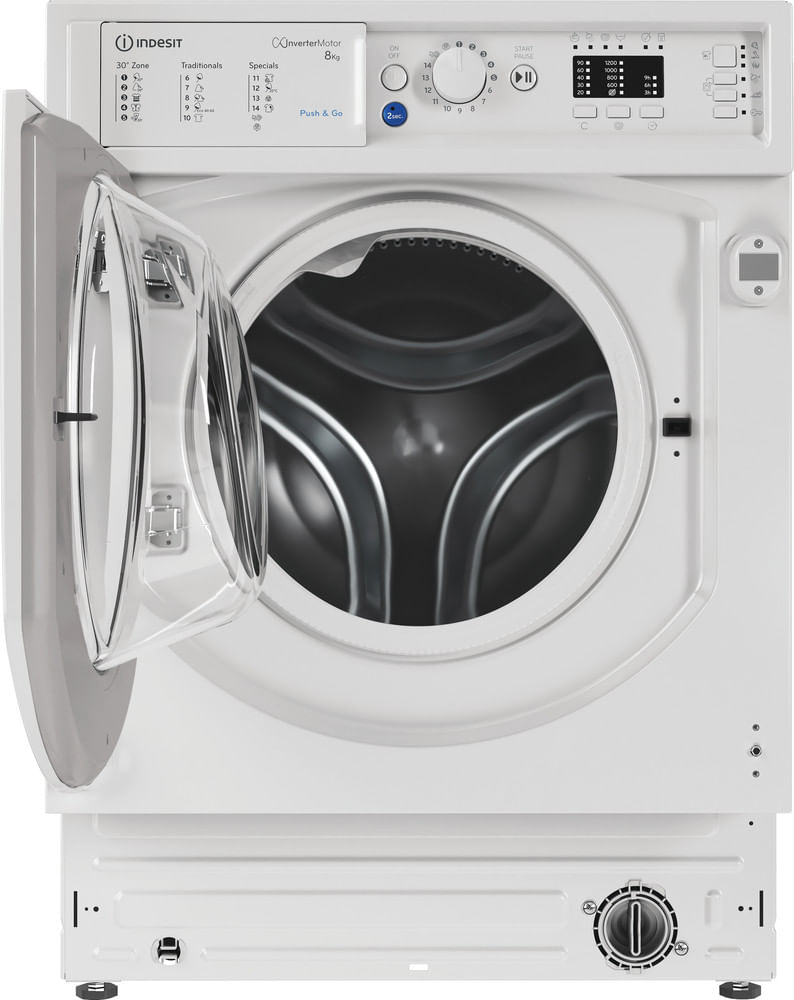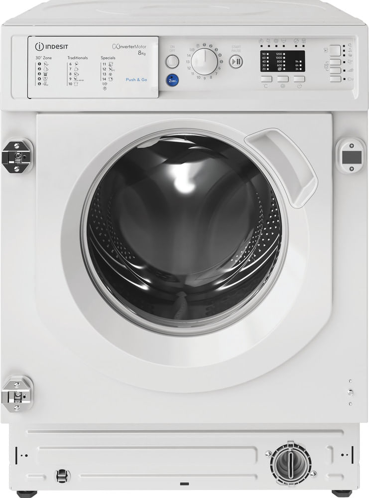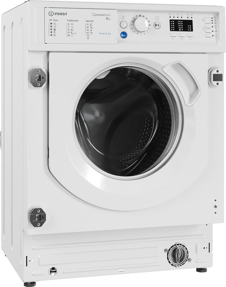 Caratteristiche di questa lavatrice da incasso a carica frontale Indesit: cestello spazioso da 8,0 kg. Centrifuga a 1200 giri al minuto, rapida ed efficiente. Colore bianco.
