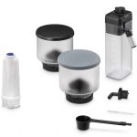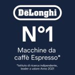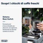 RIVELIA MILK. Macchina automatica per caffè in chicchi De’Longhi, tecnologia brevettata “LatteCrema Hot” per montare cremose e dense schiume di latte calde, esclusiva tecnologia “Bean Switch System” per cambiare varietà di chicchi all’istante alternando tra due diversi contenitori di chicchi da 250 gr, “Bean Adapt Technology” per regolare automaticamente il grado di temperatura e livello di aroma ottimale, 16 bevande di caffè e latte erogabili, display a colori full-touch TFT 3,5″, 4 profili utente con funzionalità “Coffee Routines”, funzione “Extra shot” per una maggiore intensità, funzionamento con grani e con polvere, macinacaffè integrato e regolabile fino a 13 livelli di macinatura, regolazione della temperatura, della quantità di caffè e di acqua, Thermoblock, durezza dell’acqua e spegnimento automatico programmabili, pulizia automatica della caraffa latte, colore pebble grey.
