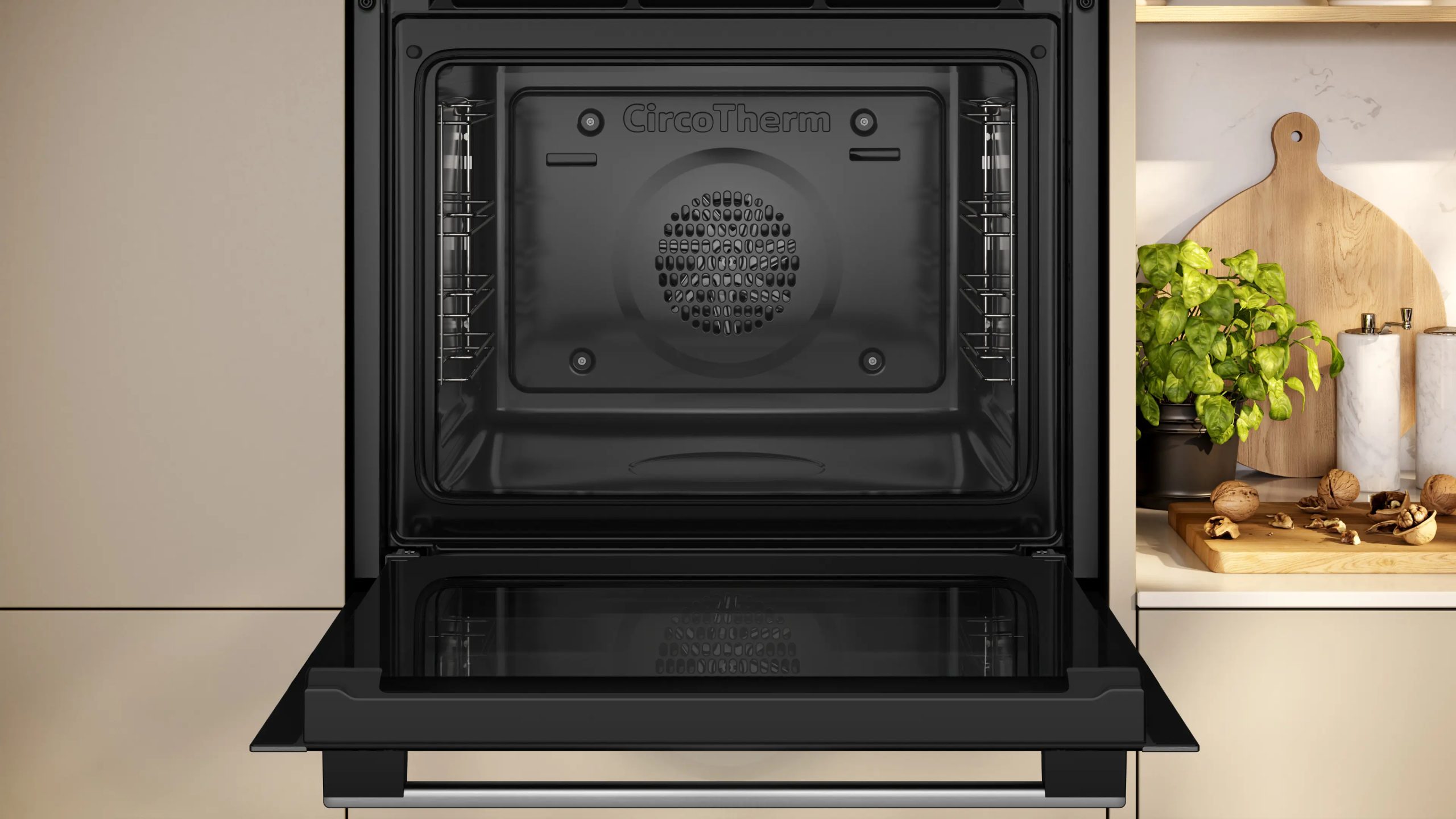 Vuoi cuocere tre teglie di deliziosi biscotti in una volta sola? Adesso puoi farlo, con CircoTherm®. Il flusso d’aria ad alta velocità distribuisce il calore in modo uniforme in tutto il forno. Puoi persino cuocere simultaneamente un magnifico arrosto e la tua torta di frutta preferita. CircoTherm® cuoce ogni piatto con cura, così puoi dedicare più tempo a intrattenere i tuoi ospiti o a pianificare la tua prossima prelibatezza.