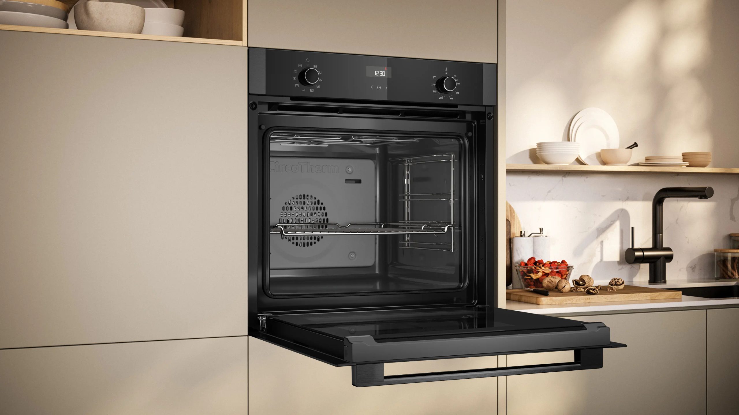 Vuoi cuocere tre teglie di deliziosi biscotti in una volta sola? Adesso puoi farlo, con CircoTherm®. Il flusso d’aria ad alta velocità distribuisce il calore in modo uniforme in tutto il forno. Puoi persino cuocere simultaneamente un magnifico arrosto e la tua torta di frutta preferita. CircoTherm® cuoce ogni piatto con cura, così puoi dedicare più tempo a intrattenere i tuoi ospiti o a pianificare la tua prossima prelibatezza.