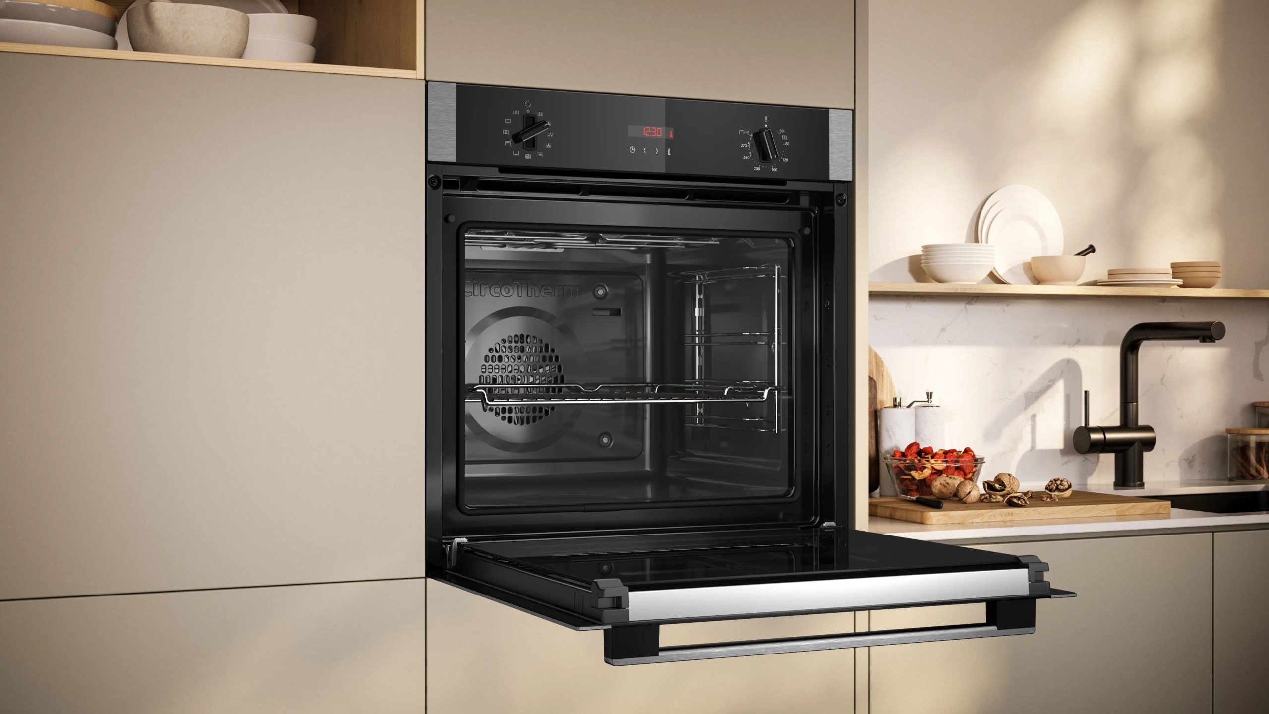 Vuoi cuocere tre teglie di deliziosi biscotti in una volta sola? Adesso puoi farlo, con CircoTherm®. Il flusso d’aria ad alta velocità distribuisce il calore in modo uniforme in tutto il forno. Puoi persino cuocere simultaneamente un magnifico arrosto e la tua torta di frutta preferita. CircoTherm® cuoce ogni piatto con cura, così puoi dedicare più tempo a intrattenere i tuoi ospiti o a pianificare la tua prossima prelibatezza.