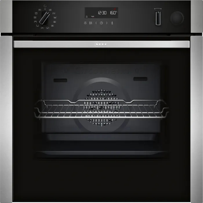 Neff N 50 B6AVH7AN3F. Capacità netta del forno: 71 L, Metodo di cottura in forno: Ventilato, Range del termostato del forno: 30 – 275 °C. Posizionamento dell’apparecchio: Da incasso, Colore del prodotto: Acciaio inox, Tipo di controllo: Manopola. Tipo di orologio: Elettronico, Applicazioni per il controllo supportate: Home Connect, Assistente virtuale: Amazon Alexa & Google Assistant. Classe efficienza energetica: A+, Consumo energetico (convenzionale): 0,94 kWh, Consumo energetico (convezione forzata): 0,69 kWh. Quantità lampade: 1 lampada(e), Tipo di lampada: Alogena