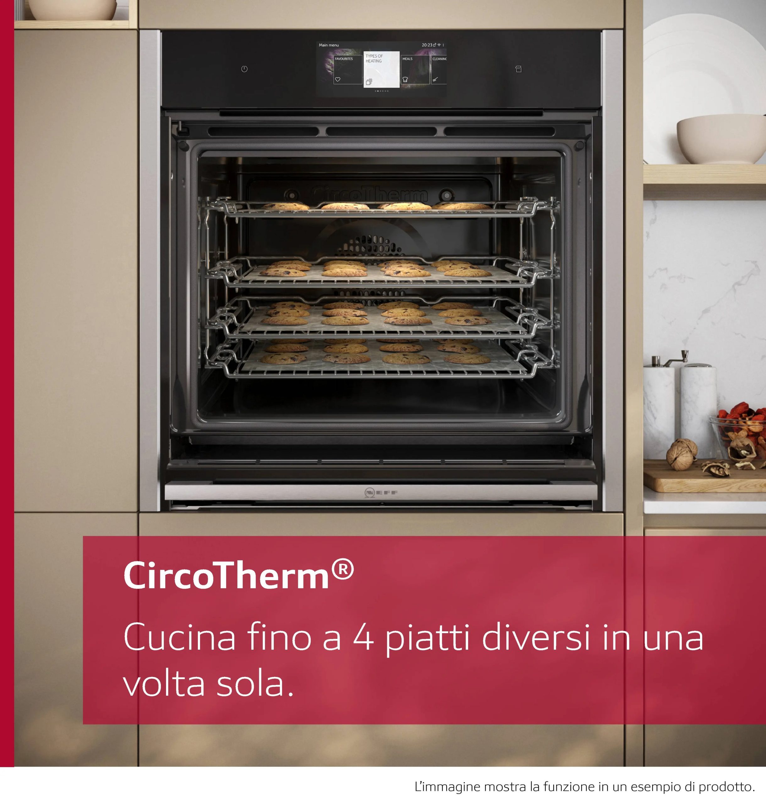 Prepara tutte le portate della tua cena cucinando su 4 livelli contemporaneamente.Con CircoTherm® puoi cucinare fino a 4 pietanze diverse contemporaneamente sui 4 livelli del forno. Il flusso d’aria mirato ad alta velocità assicura che i tuoi piatti si mantengano gustosi e ben separati, senza rischiare che i sapori si mescolino. Per preparare tutte le portate della cena ottimizzando i tempi.