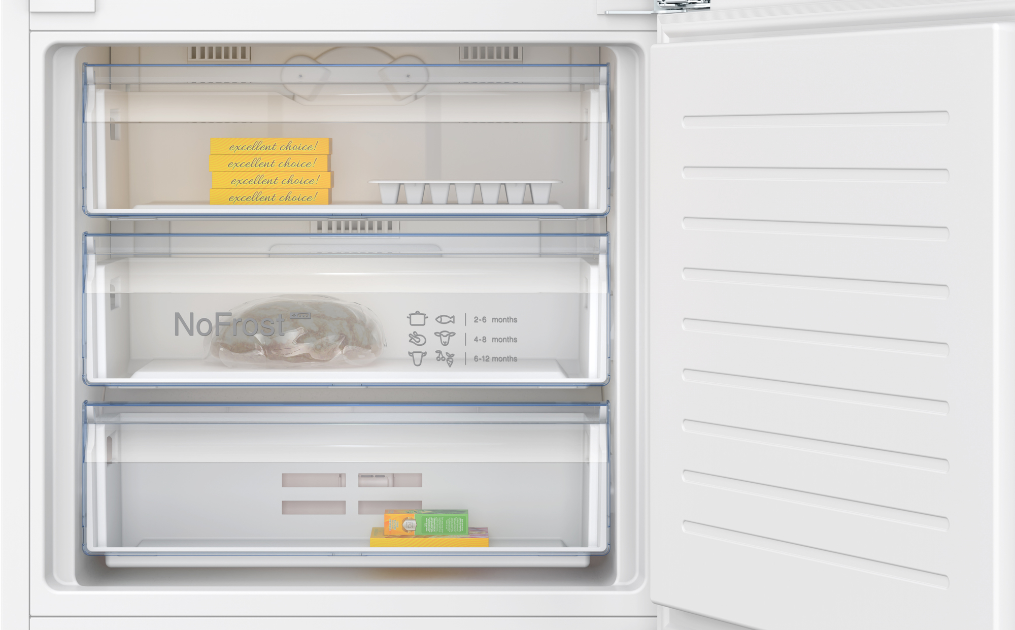 L’era glaciale è finita. No Frost assicura un flusso costante di aria secca nel tuo congelatore. Nessuna umidità significa nessun accumulo di ghiaccio, quindi puoi cancellare “sbrinare il frigo” dalla lista delle cose da fare.