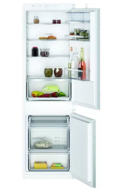 Neff KI5862SE0S. Capacità netta totale: 267 L. Cerniera porta: Destra. Classe climatica: SN-ST, Emissione acustica: 35 dB. Capacità netta frigorifero: 183 L, Luce interna, Numero di ripiani frigorifero: 4, Numero di cassetti per verdura: 1. Capacità netta congelatore: 84 L, Capacità di congelamento: 4,2 kg/24h. Classe efficienza energetica: E, Consumo energetico annuo: 229 kWh
