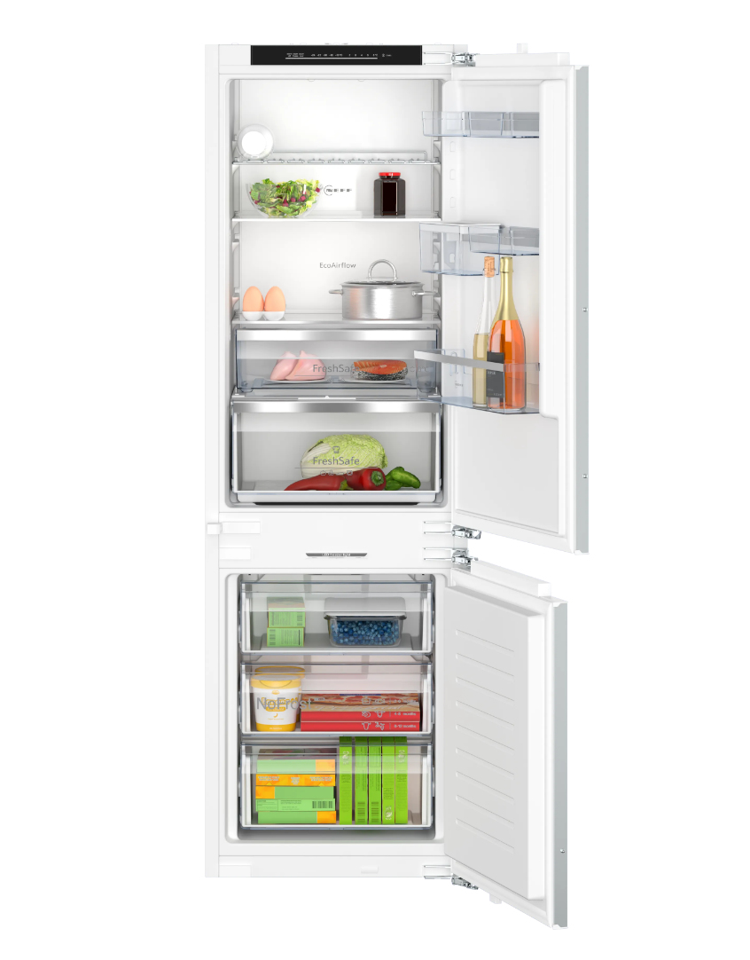 Neff N 70. Capacità netta totale: 260 L, Classe climatica: SN-ST, Emissione acustica: 35 dB. Capacità netta frigorifero: 184 L, Luce interna, Numero di ripiani frigorifero: 3, Numero di cassetti per verdura: 1. Capacità netta congelatore: 76 L, Capacità di congelamento: 8 kg/24h, No Frost (congelatore). Compartimento zona fresca. Classe efficienza energetica: D, Consumo energetico annuo: 186 kWh. Colore del prodotto: Bianco