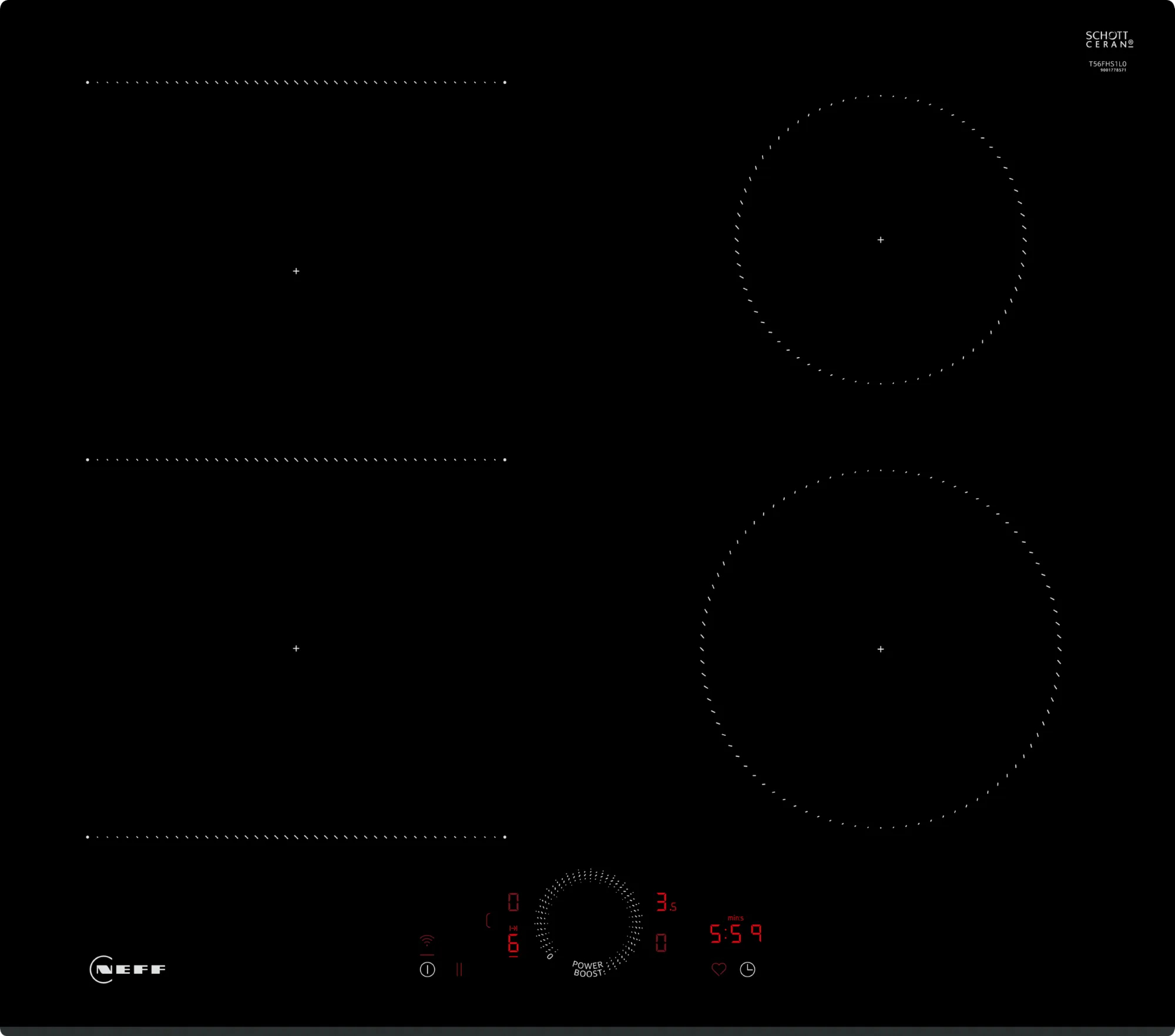 | Tecnologie NEFF (cottura) | Combi Induction, Favourites Button, Home Connect, PowerBoost, QuickStart, ReStart, Twist Touch |