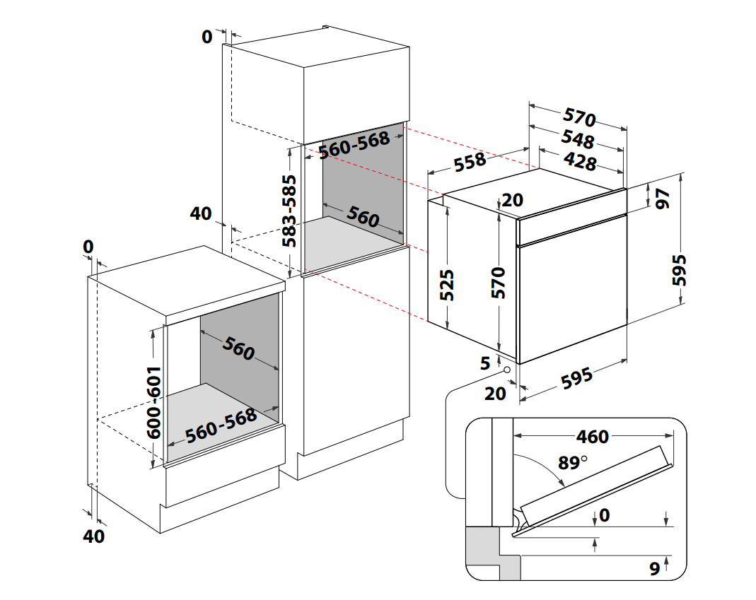 | Larghezza dello scomparto di installazione (min) (cm) | |