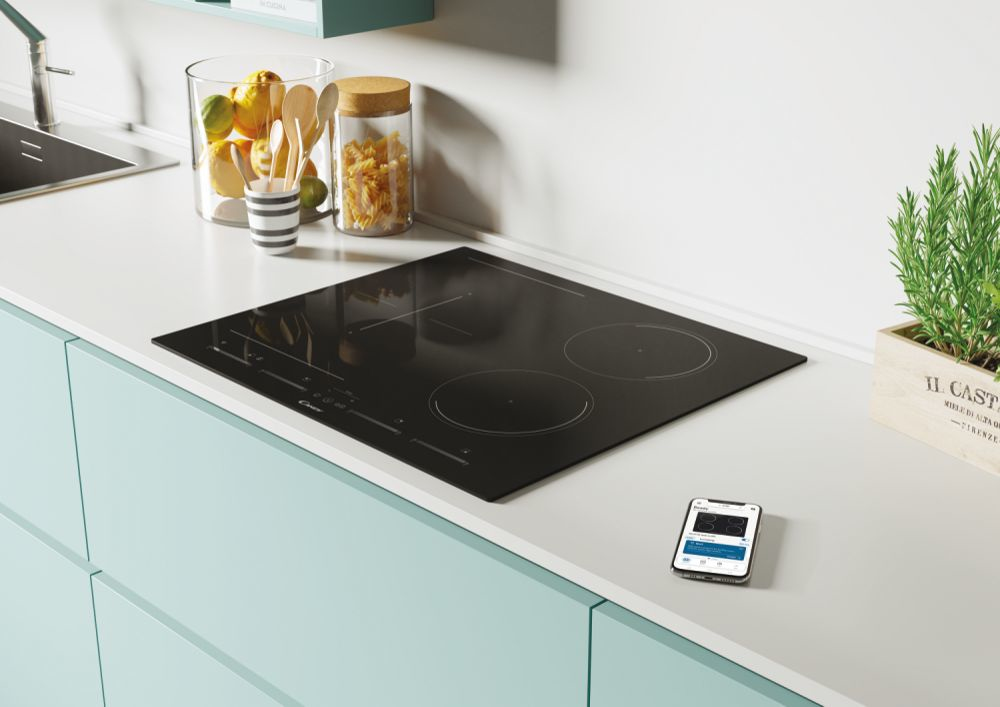 Candy New Timeless CTPS64MCTTWIFI. Colore del prodotto: Nero, Posizionamento dell’apparecchio: Da incasso, Dimensione della larghezza del piano cottura: 59 cm. Tipo di controllo: Touch, Posizione di controllo: Frontale superiore, Tipo di orologio: Elettronico. Tensione di ingresso AC: 220 – 240 V. Larghezza: 590 mm, Profondità: 520 mm, Altezza: 55 mm. Larghezza imballo: 690 mm, Profondità imballo: 635 mm, Altezza imballo: 115 mm