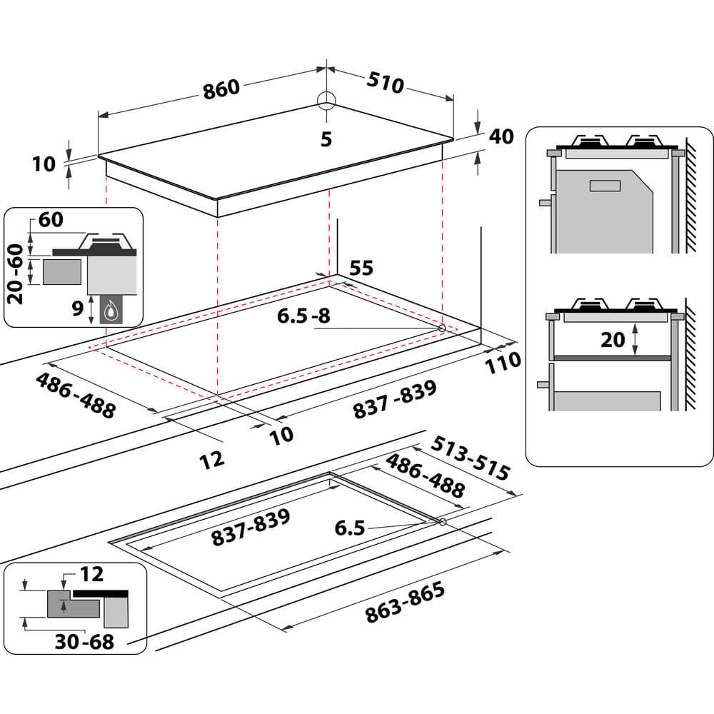 | Dimensione della larghezza del piano cottura (cm) | 90 |