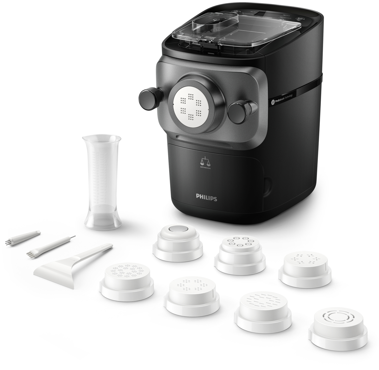 Con la Serie 7000 di Philips, puoi arricchire il tuo menu con la pasta fatta in casa. Con la tecnologia ProExtrude, puoi ottenere una finitura morbida ed elastica e gustare un’ottima pasta con le funzioni di perfetta miscelazione e pesatura automatica, in meno di 10 minuti*.