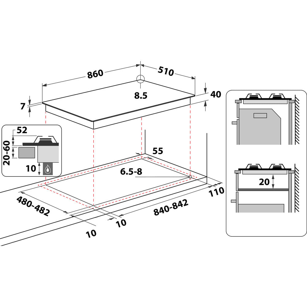 | Dimensione della larghezza del piano cottura (cm) | 86 | 90 | 86 |