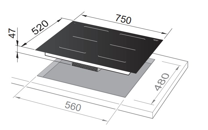 Dimensione della larghezza del piano cottura (cm)75