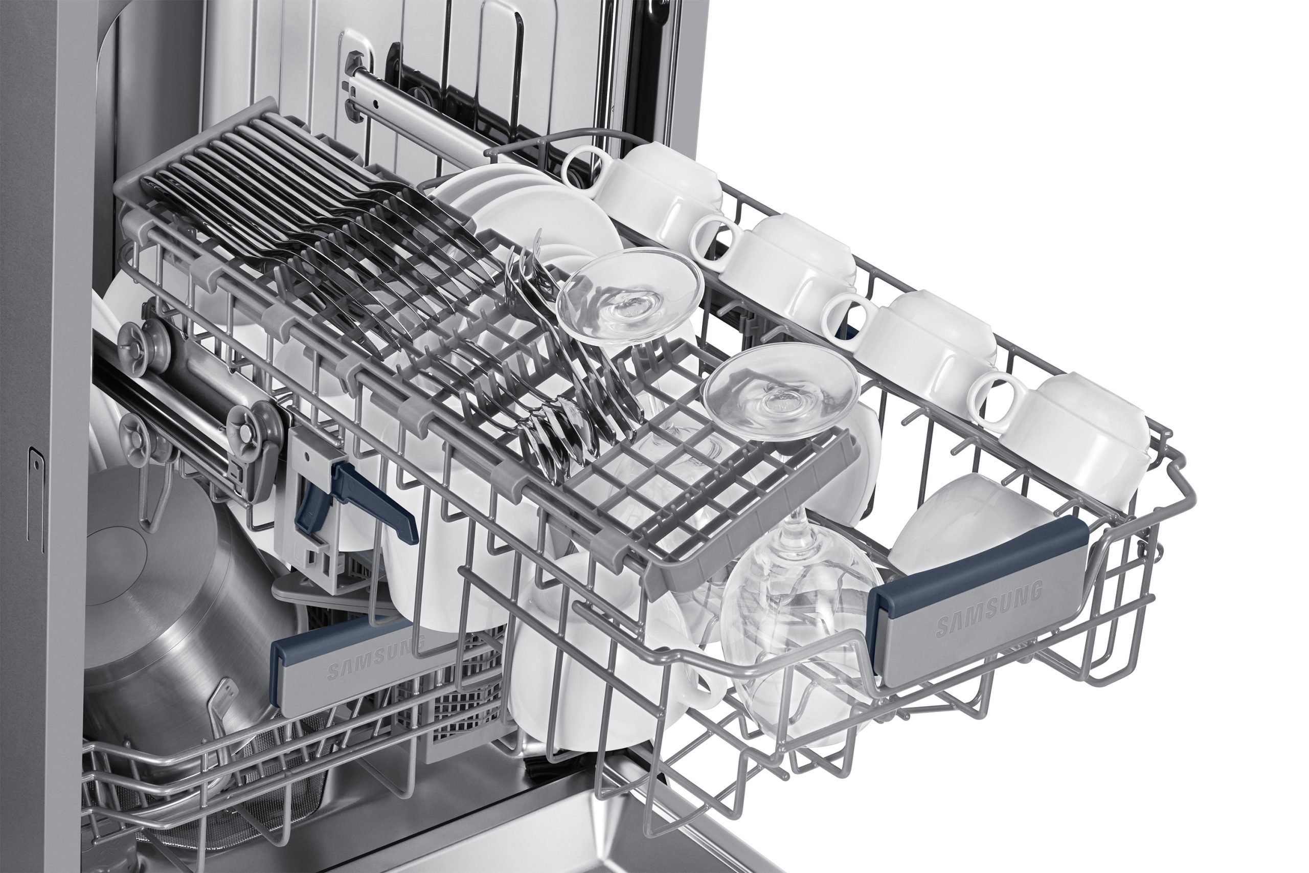 Carica più facilmente piatti di dimensioni e forme diverse. Grazie alla regolazione automatica potrai alzare o abbassare rapidamente e con un solo gesto il cestello superiore, guadagnando spazio nel cestello inferiore per posizionare piatti di dimensioni e forme diverse, ma anche pentole alte, vassoi e piatti da portata.